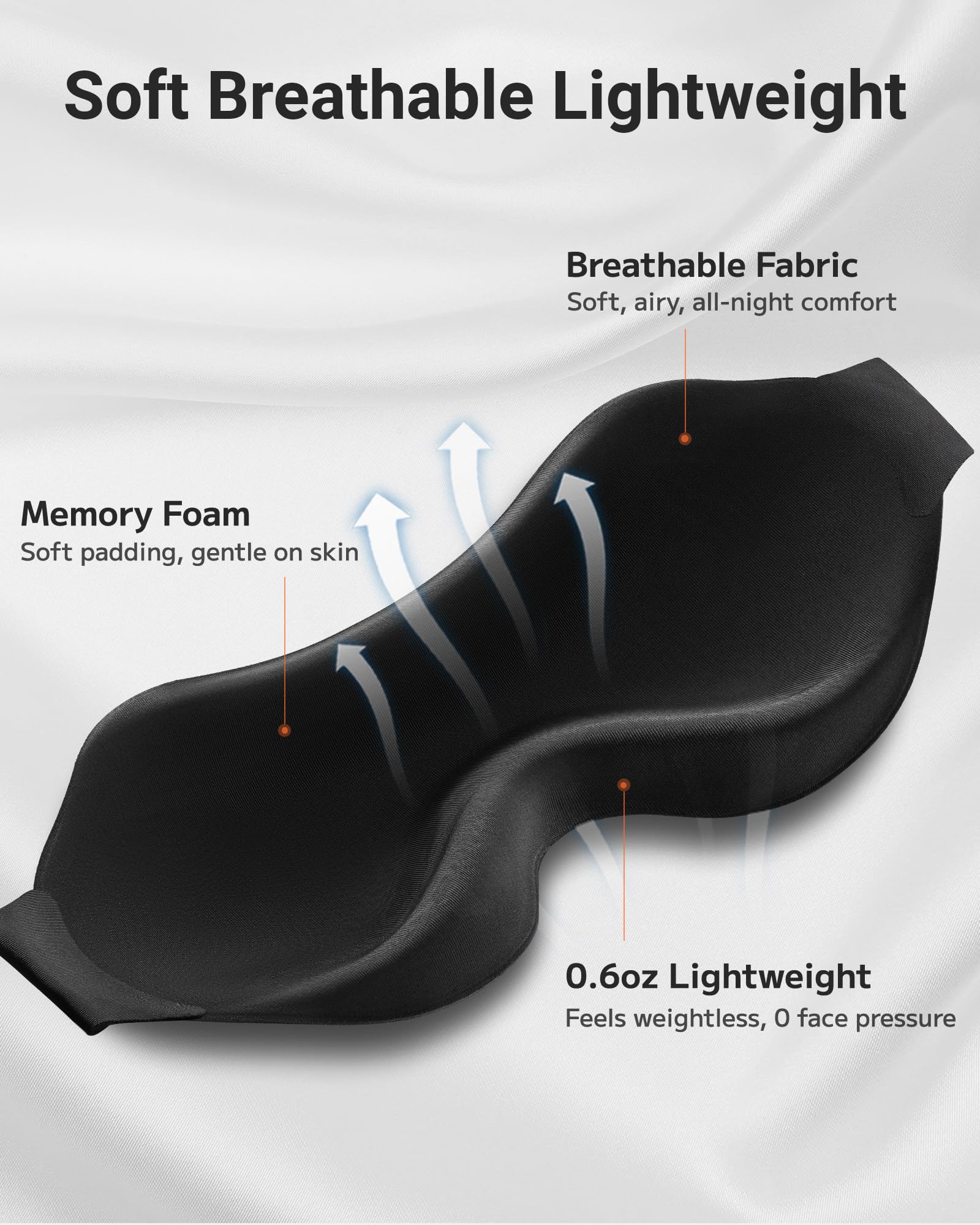 - ππ¬π¬% πππππ§ πππ’ππππ‘π β π¦ππππ£ ππ‘ π§π₯π¨π πππ₯ππ‘ππ¦π¦οΌOur ergonomic 3D sleep mask conforms perfectly to your face and effectively blocks light from all angles. The upgraded nose bridge cutout design and soft padding effectively block light from the nose, sides, and edges. Enjoy complete darkness, even in a brightly lit room, for deeper, undisturbed sleep.