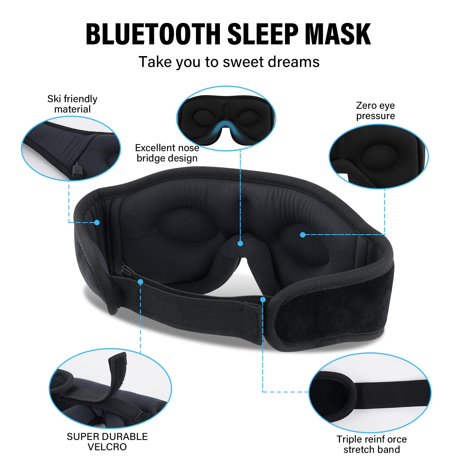 - 【SAVE INSOMNIA, SAVE YOUR SLEEP & Cool Gift Idea】The eye mask with Bluetooth headphones for sleeping is greatly helpful for people who often suffer from insomnia, lack of sleep, anxiety, high stress, or are prone to being woken up by noise. Beyond that, the sleep mask with Bluetooth headphones can effectively block out a partner's snoring, ensuring you a sound sleep. The sleeping mask is also a thoughtful gift for men, women, girls, and boys.