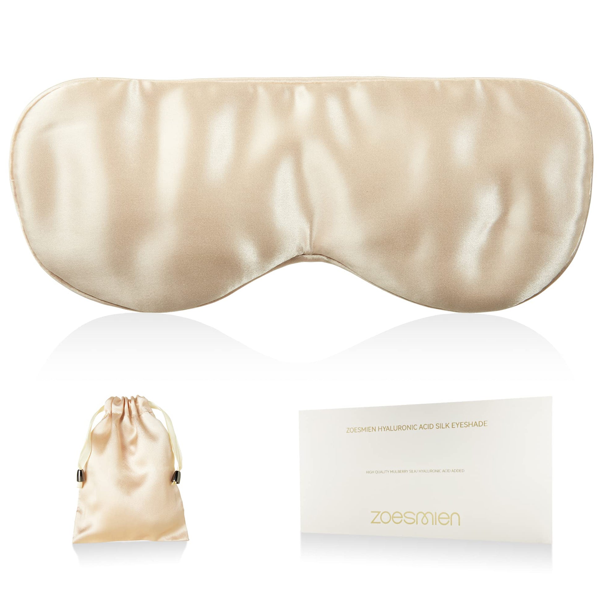 Sleep Mask 100% Mulberry Silk for Light Blocking, ZOESMIEN Eye Mask for Women Men Side Sleeper, Puffiness Dry Eyes Headache, Adjustable Strap, Christmas Gift Package, Champagne Gold
