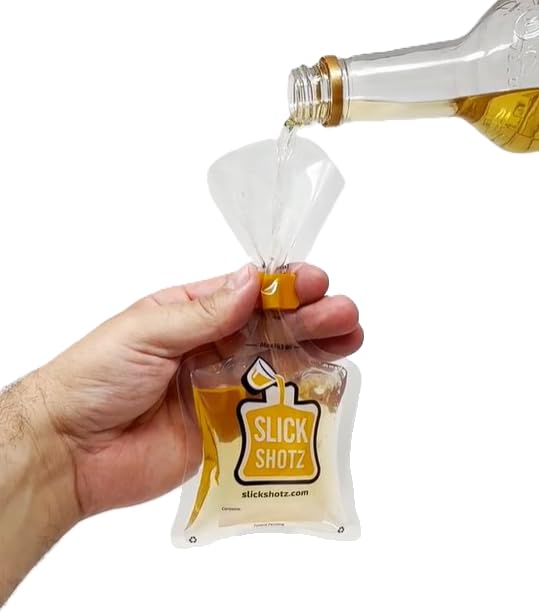 Details: No need to overpay at the bar or stress about drink restrictions when you can bring your own discreetly. Slick Shotz heat sealed alcohol pouches are your go-to solution for enjoying your favorite beverages anywhere. Each 3oz reusable plastic flask for liquor is made from BPA-free, food-safe plastic and seals tightly with a heat sealer for a leak proof and air tight finish.