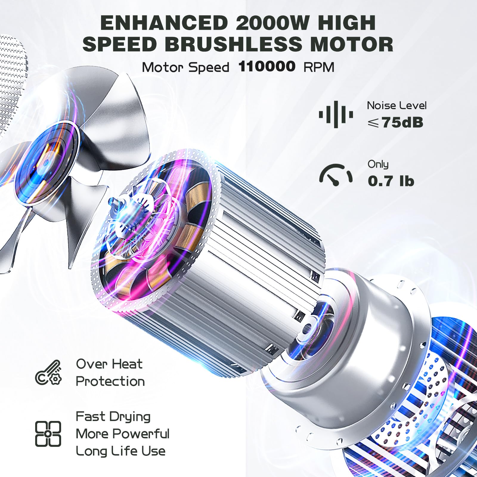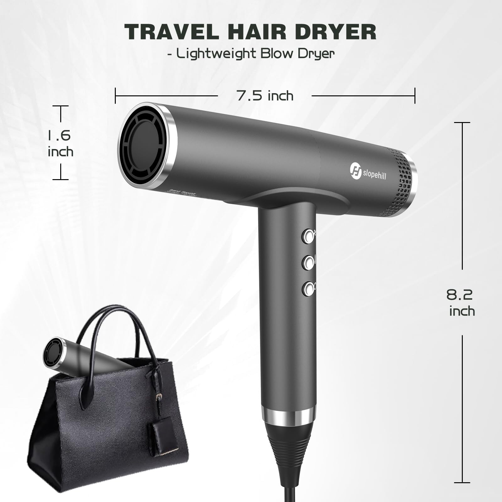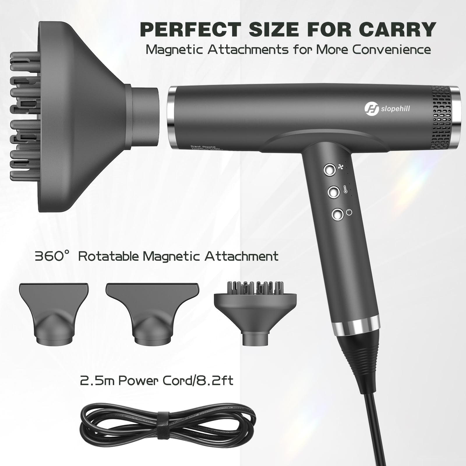 - 【2000W Powerful High-speed Motor, Super-fast Drying】 slopehill professional hair dryer features an airflow of 26 m/s and a speed of 110,000 RPM, suitable for salon and home. Compact and stylish brushless hair dryers is more suitable for women