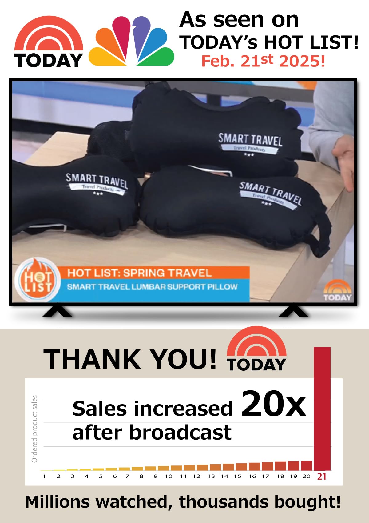 SmartTravel Travel Products Lumbar Pillow Inflatable Lumbar Support Pillow Travel Pillows for Airplane Long Flight Essential for Women Men Kids