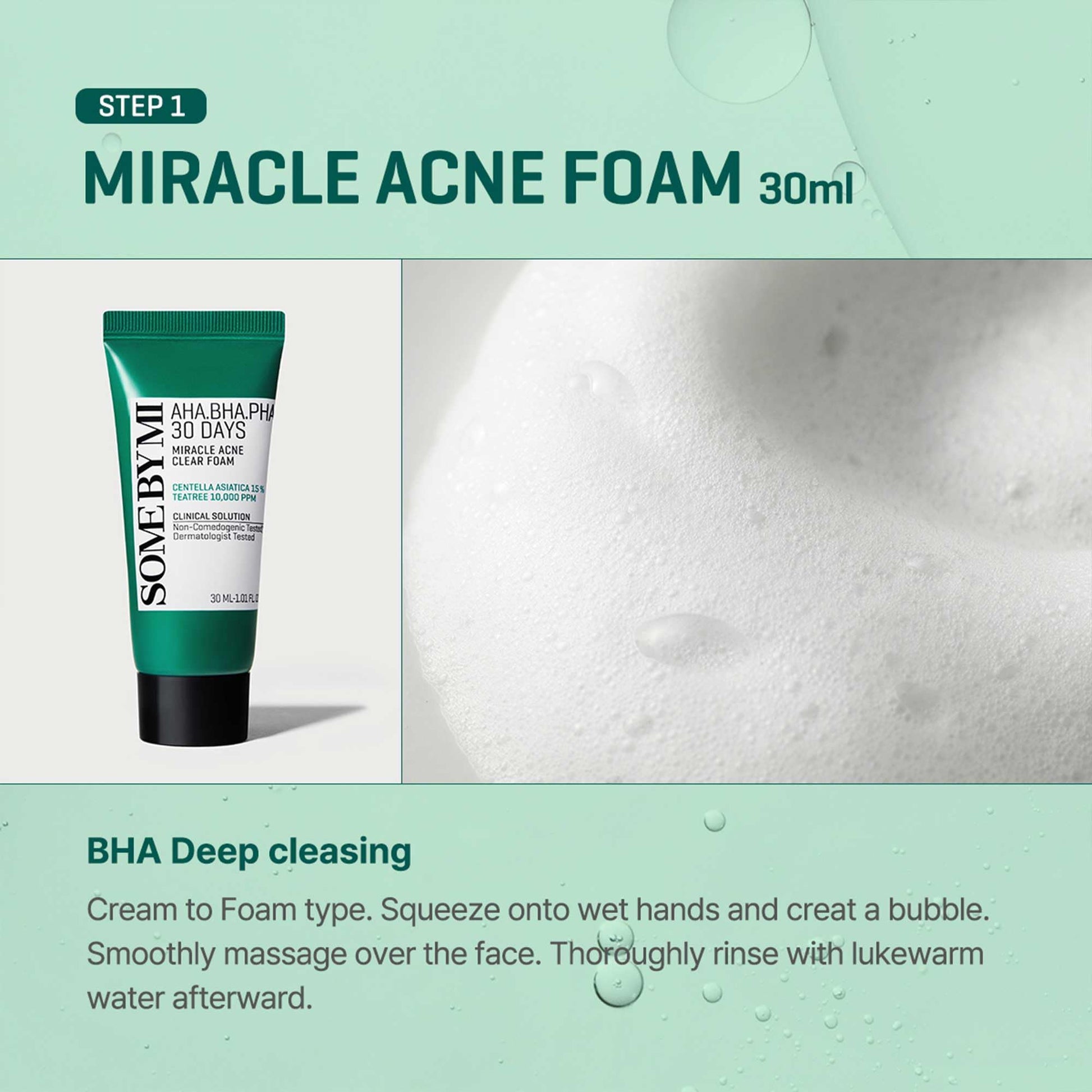 SOME BY MI AHA BHA PHA 30Days Miracle AC SOS Kit - Toner 1.01Oz, Serum 0.33Oz, Cream 0.7Oz, Foam 1.01Oz - Mild Exfoliating Daily Skin Care Set - Skin Wastes, Sebum, Oiliness Care - Korean Skin Care