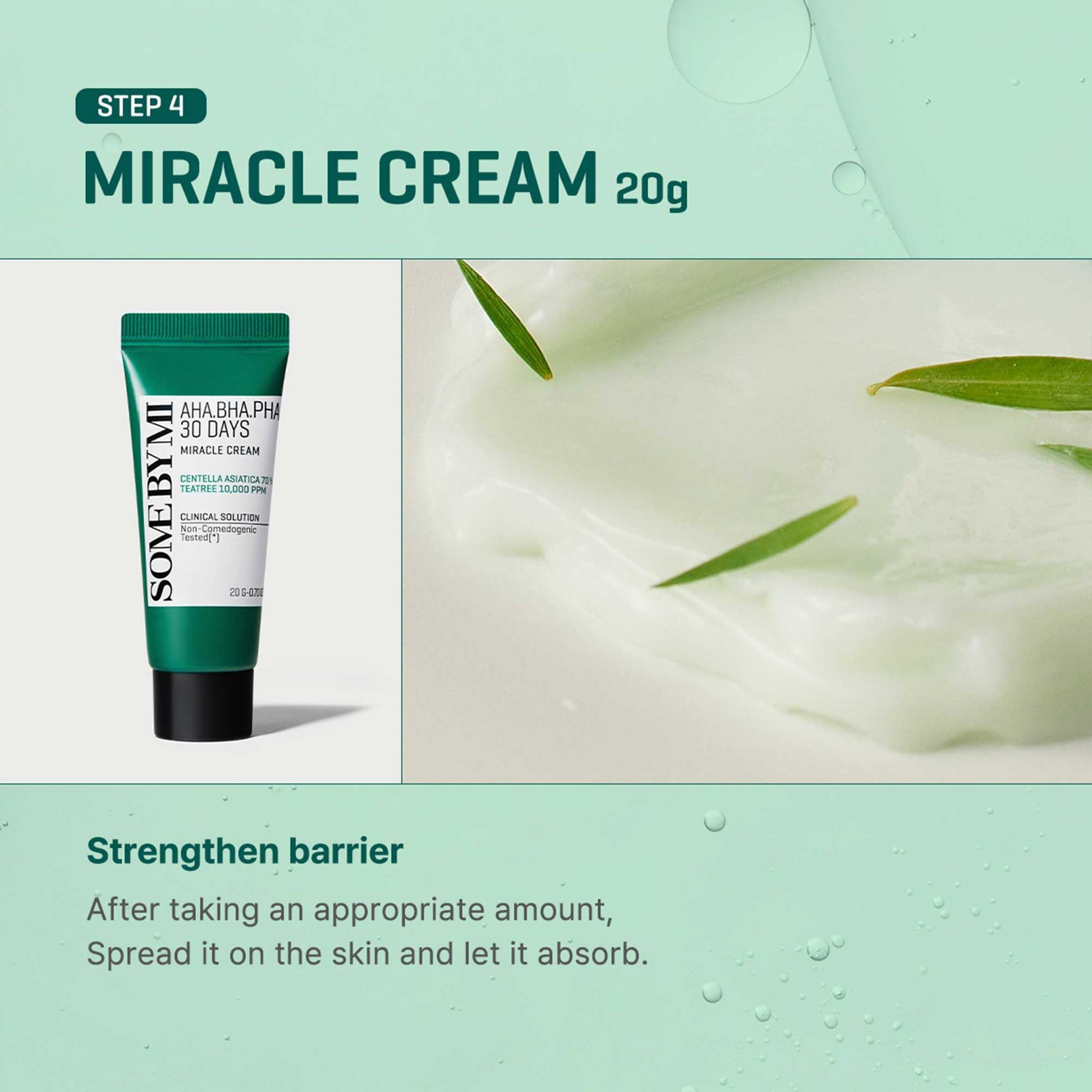 - MIRACLE CREAM : Miracle cream is designed to improve the skin's barrier function and brightening benefits. The high concentration of pennywort extract and 4-Cicacare helps to strengthen the skin's barrier and promote overall skin health. The inclusion of adenosine provides wrinkle-improving benefits, while niacinamide helps brighten the skin. The product is free of 20 types of artificial ingredients and has been dermatologically tested for sensitive skin