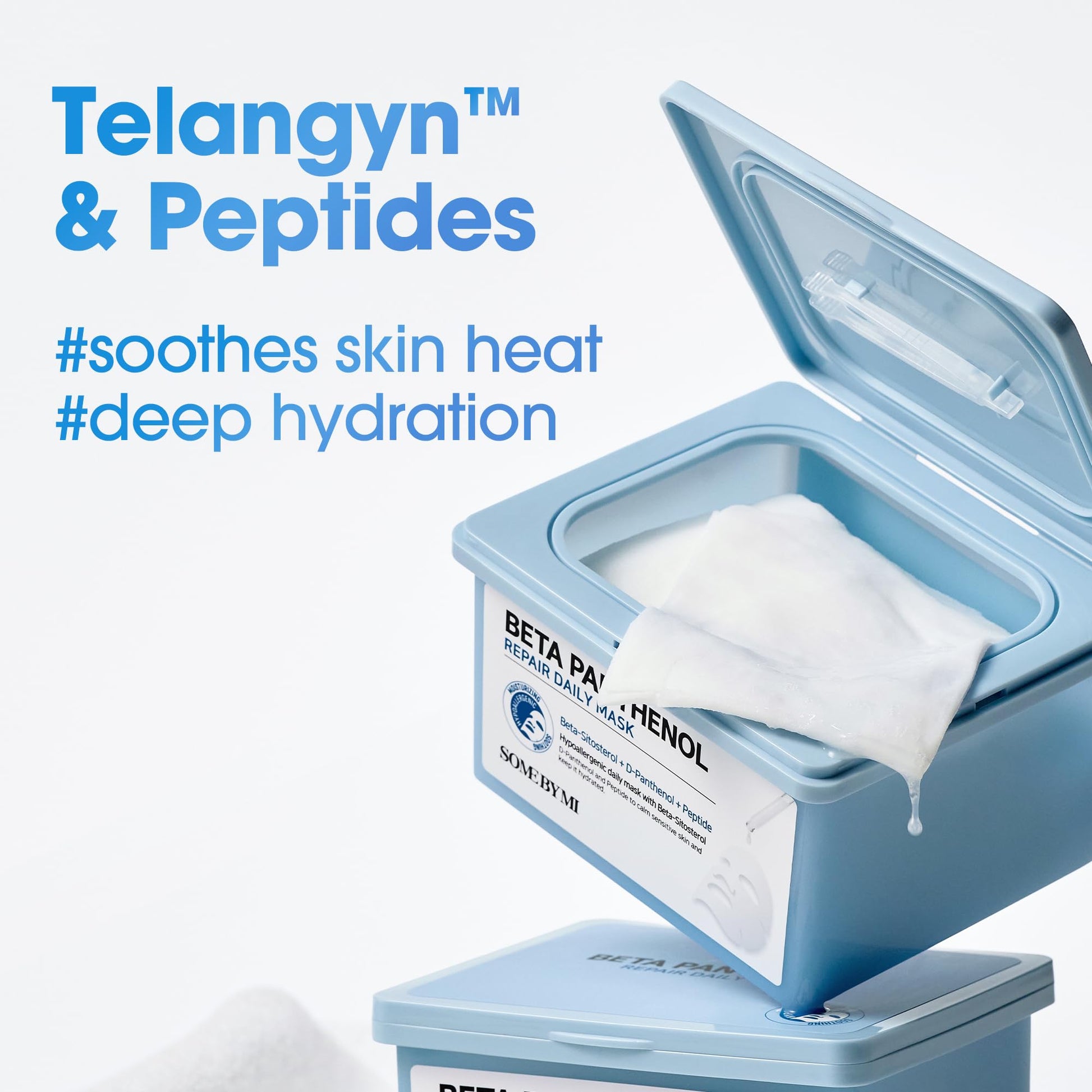 SOME BY MI Beta-Panthenol Repair Daily Mask - 30 Sheets, 11.8Oz - Daily Vegan Korean Face Sheet Mask for Skin Barrier Recovery - Hydrating and Moisturizing Skin Care with Panthenol - Korean Skin Care