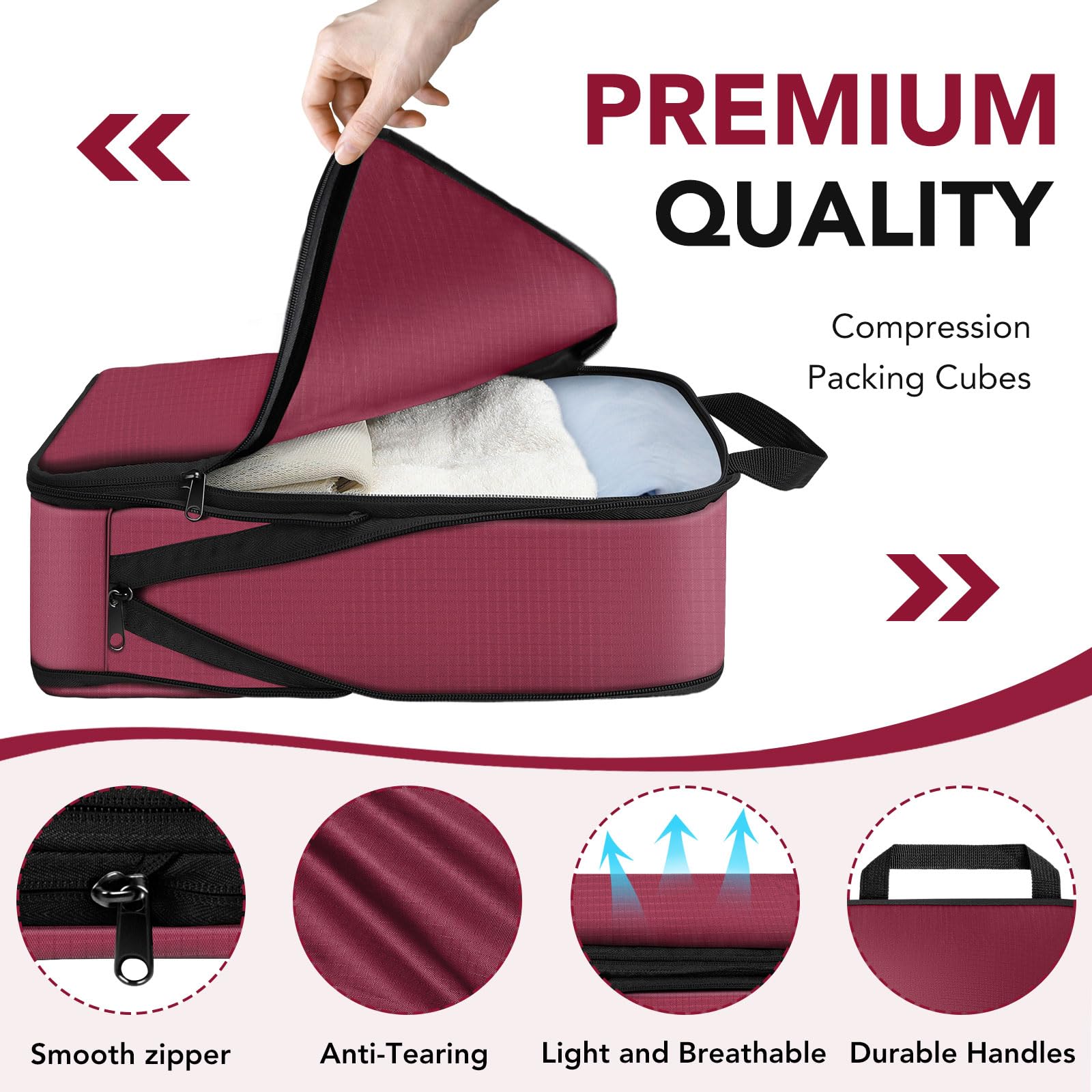 Sowgnaw 4PCS Red Polyester Packing Cubes for Travel, Lightweight Compression Travel Bags - Luggage Suitcase Organizer with Zipper Closure
