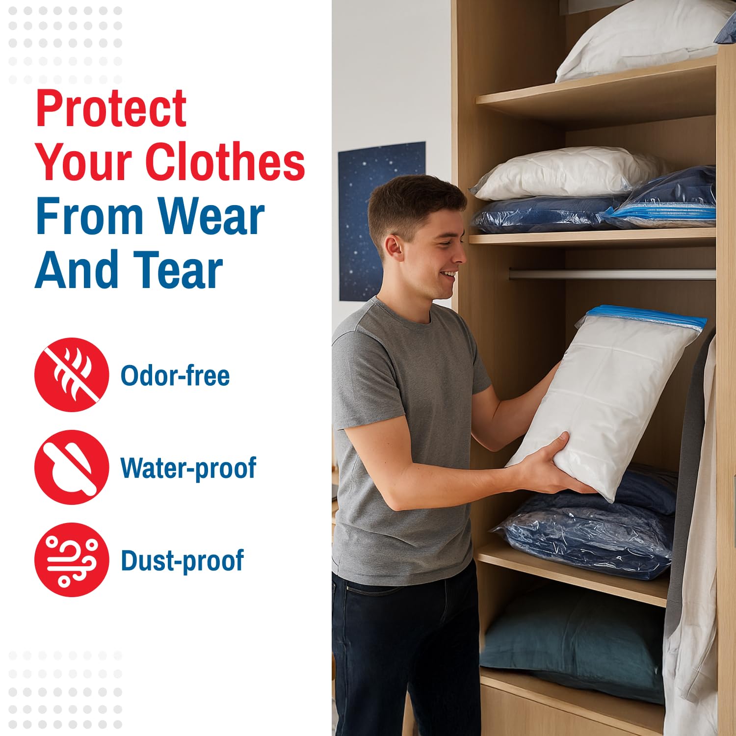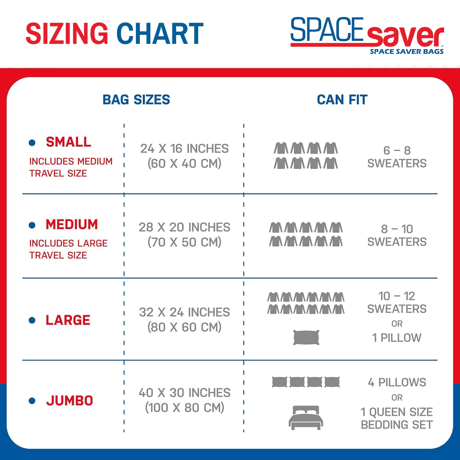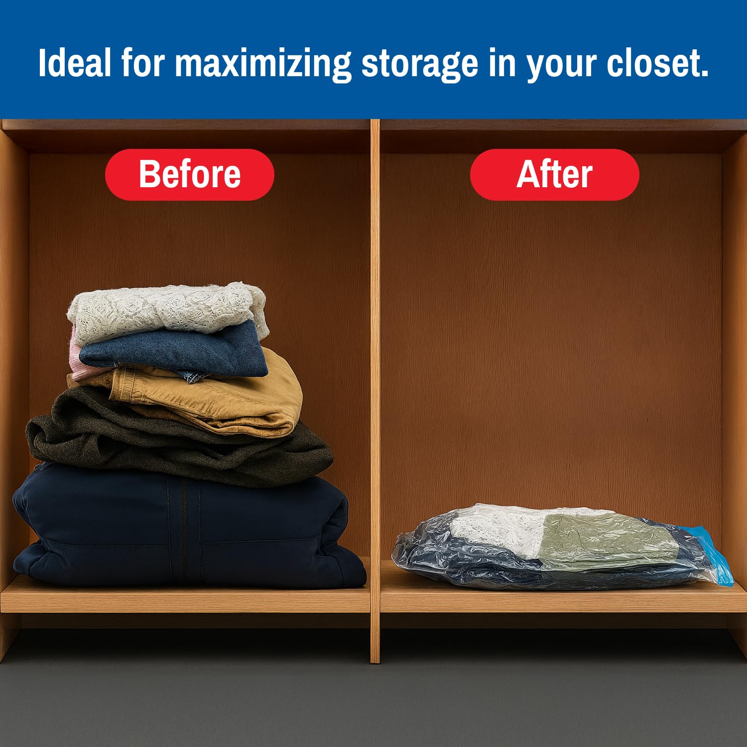 - Save Up to 80% Space: These vacuum seal space saver bags are perfect for compressing suits, jackets, dresses and clothing. Ideal for maximizing storage in your closet, luggage, or basement.