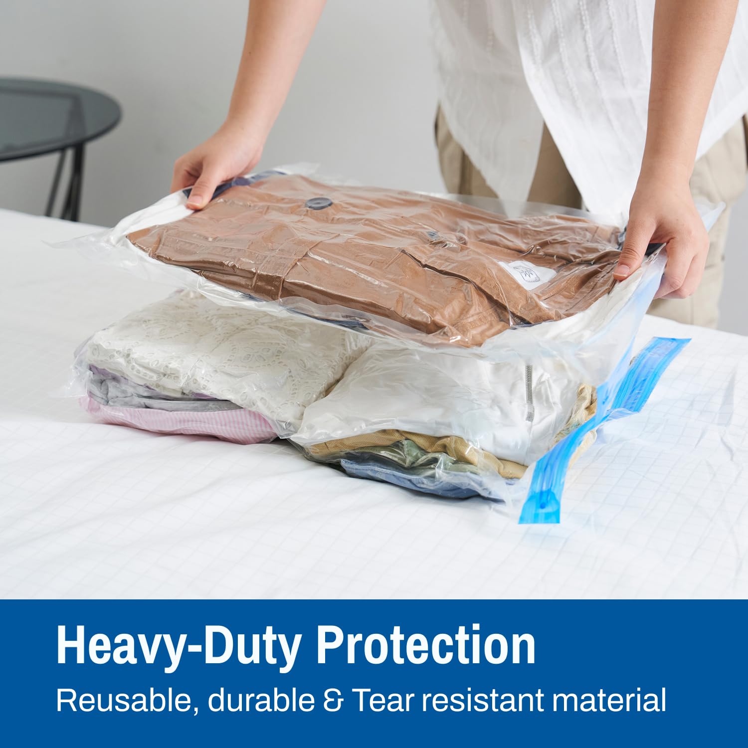 - Heavy-Duty & Reusable: Crafted from thick, durable PA+PE material, these vacuum seal storage bags are rip-resistant and designed for multiple uses—great for moving supplies or long-term clothing storage.