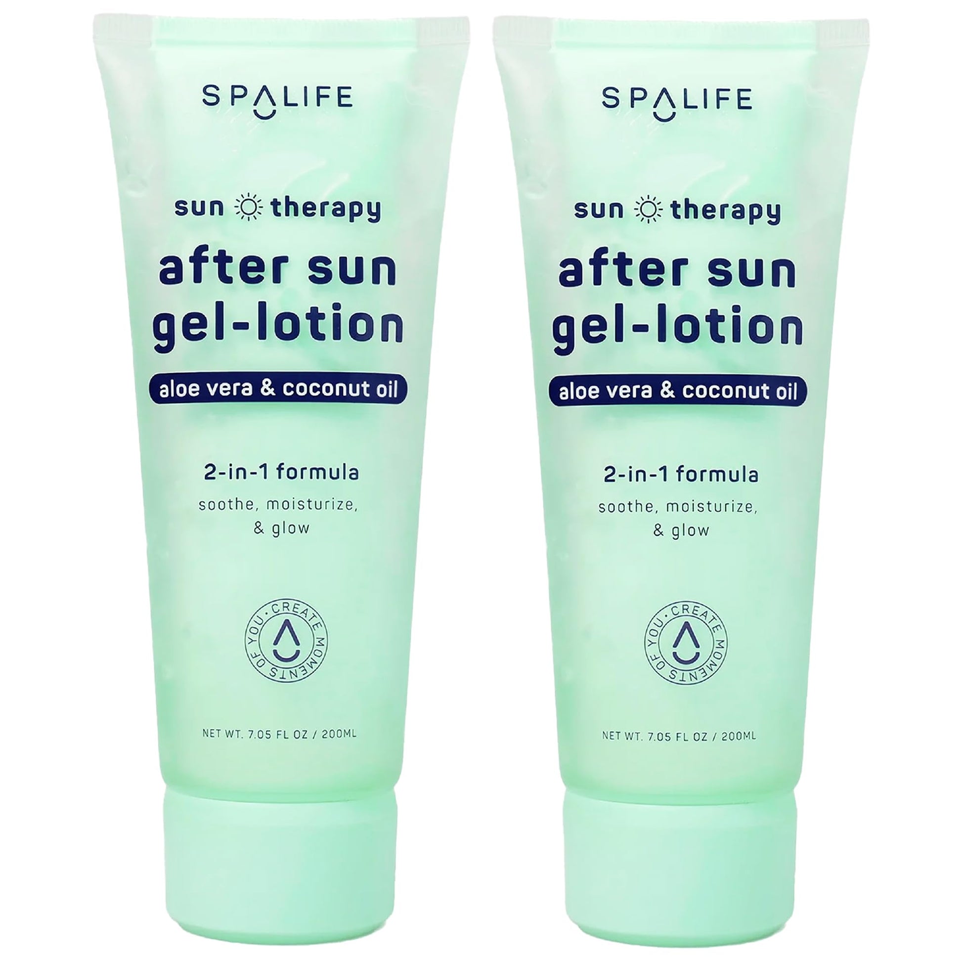 SpaLife After-Sun-Gel Lotion and Moisturizer for Sunburn Refelief - Two in One Formula, Infused with Aloe, Coconut Oil and Hyaluronic Acid - 2 Pack