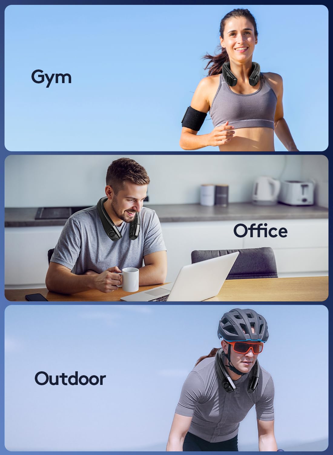 - 4.【Perfect Design & Multi-Scene Comfort】With an ergonomic neck-hug design, this neck fan stays secure during workouts, commutes, or desk work. Ideal for hiking, the gym, travel, and the office