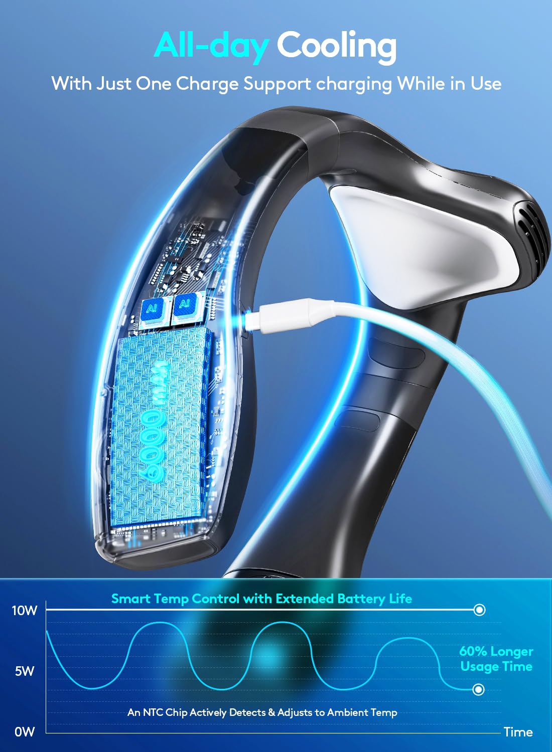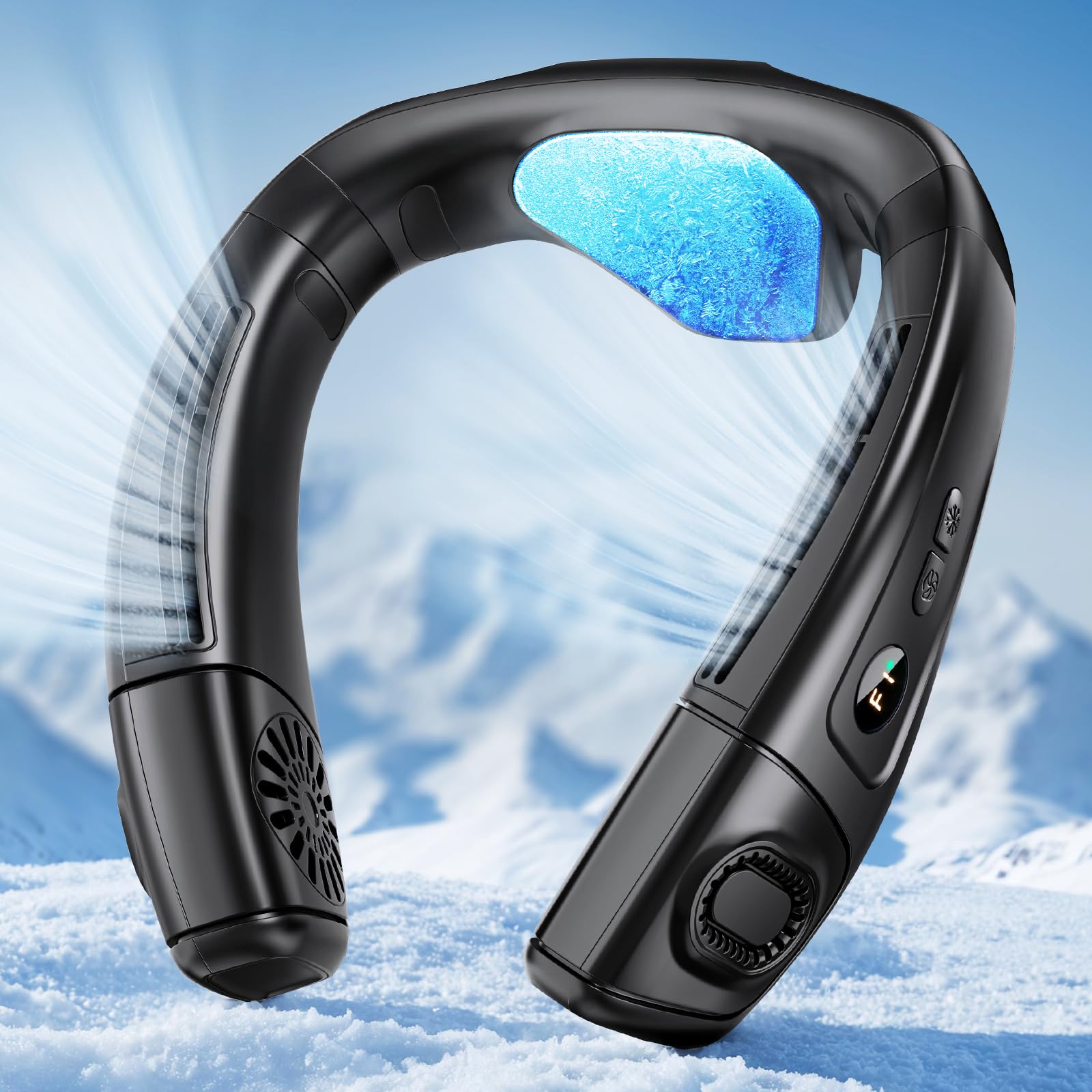 - 1.【Large Cooling Plate & 400% Enhanced Cooling with NTC】The neck fan featuring advanced NTC temperature control and large semiconductor cooling plate, this neck fan delivers 4x faster cooling than traditional fans. The 4-duct turbo AR system ensures 360° airflow wraps around your neck, back, and shoulders for full-body temperature drop in 3 seconds
