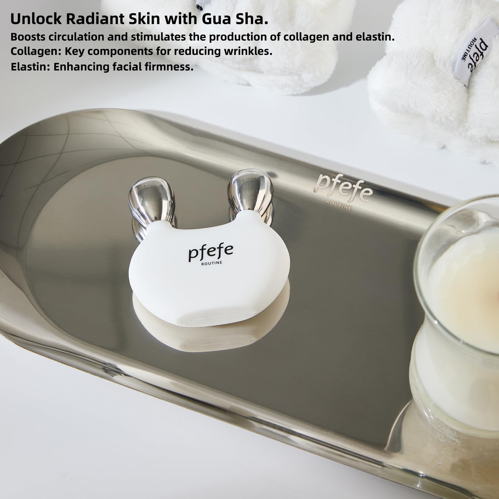 - UNIQUE AND RELAXING EXPERIENCE: The PFEFE stainless steel rabbit gua sha tool combines gua sha and cryotherapy in one device. Facial gua sha increases circulation and promotes the production of anti-aging molecules such as collagen and elastin. Collagen helps reduce wrinkles, while elastin helps firm and tone the face. This increased circulation also aids in detoxification. Cryotherapy reduces skin puffiness, resulting in tighter, brighter, and toned skin