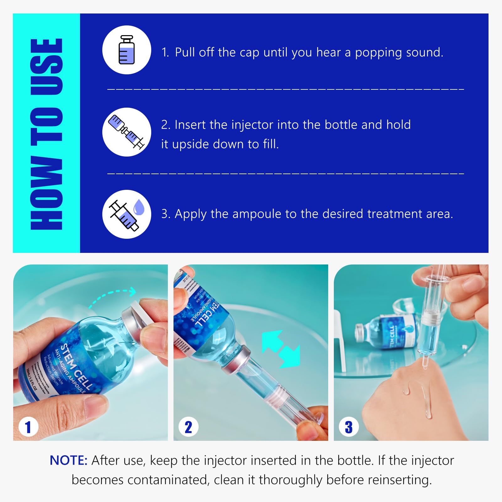 - Easy to Use: After cleansing and toning, apply 3 - 5 drops of the stem cell serum evenly over the face and massage gently until fully absorbed, integrating perfectly into your daily skincare routine. Whether you have dry, oily or sensitive skin, this stem cell serum for face will meet your needs.