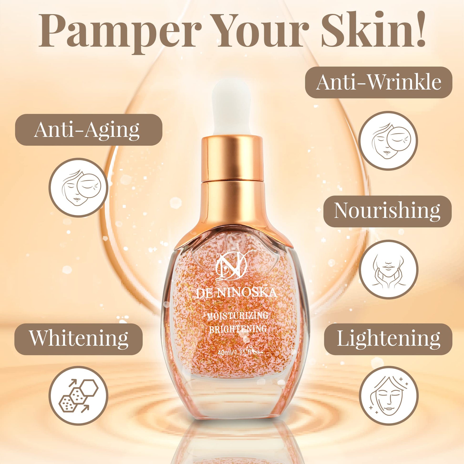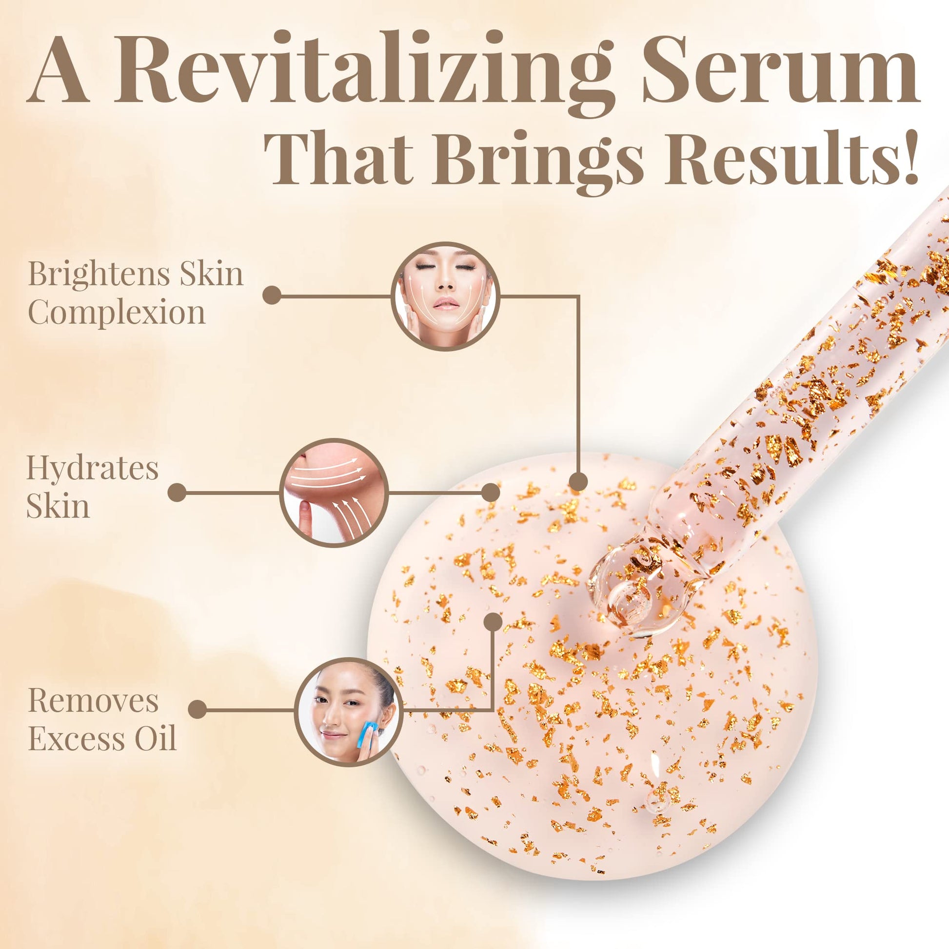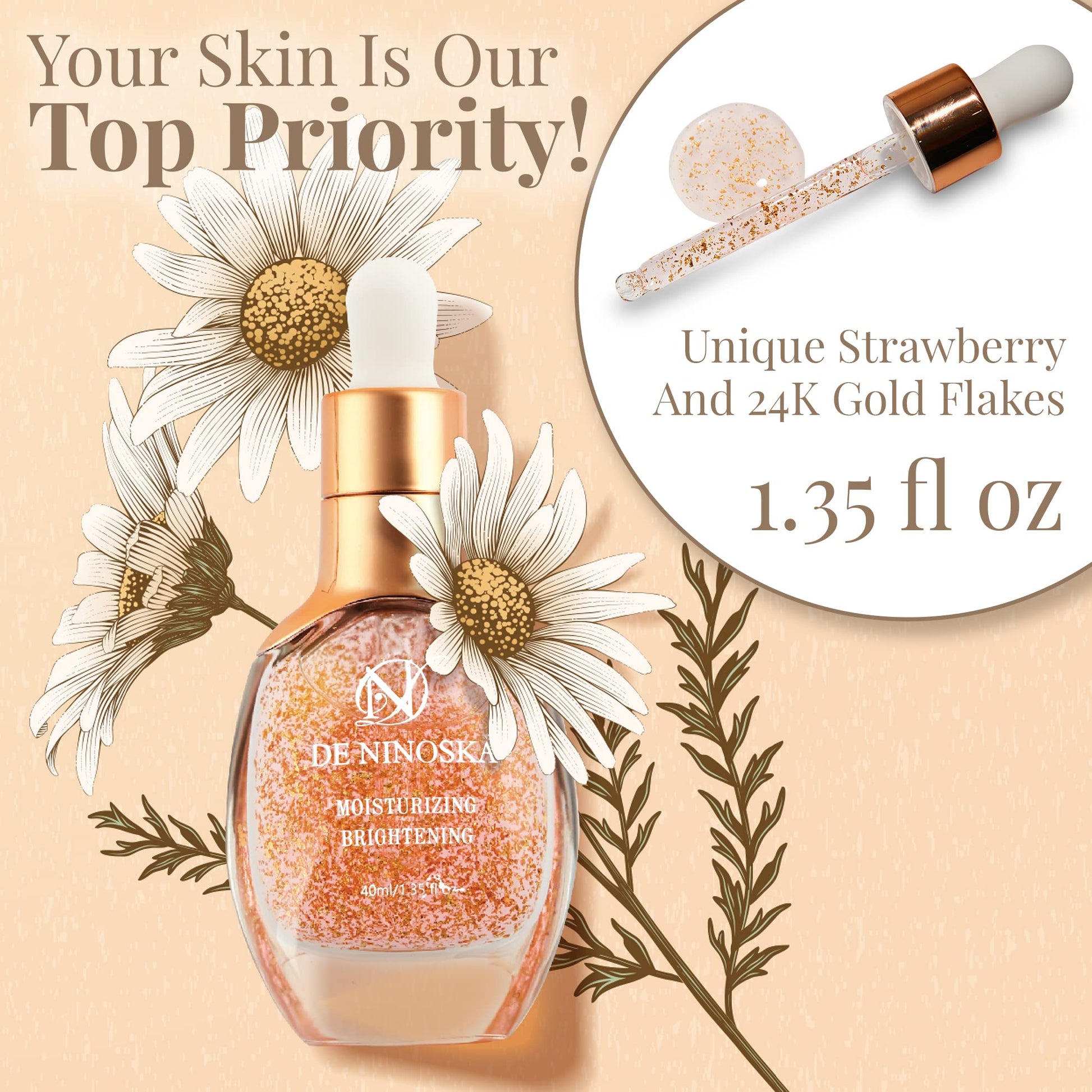 - A Treat For Your Skin.. Arriving in a larger bottle, face serum for glowing skin is a value for money investment for your skin. It's infused with premium ingredients like strawberry and gold flakes, that feels fresh, and soothes and hydrates skin well.