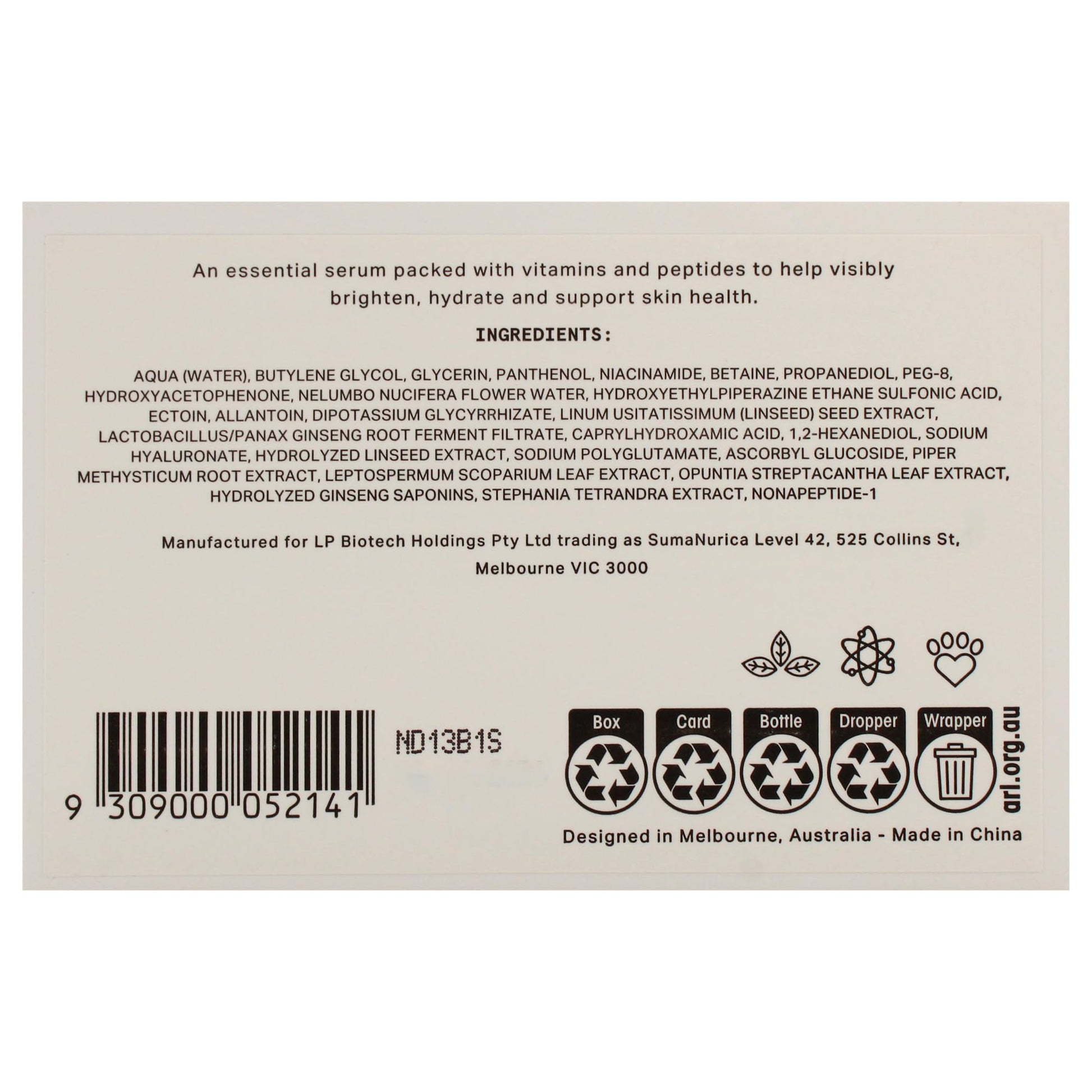 Details: Our serum works to improve pigmentation and redness for a visibly brighter appearance. It is formulated to refine, brighten, and boost hydration for your skin while improving its texture and restoring its natural barrier. SumaNurica Nonapeptide Niacinamide Rejuvenating Serum supports a smooth complexion and balances excess oil, promoting a rejuvenated and brightened complexion. This vegan and fragrance-free serum is gentle on the skin and is suitable for all skin types.