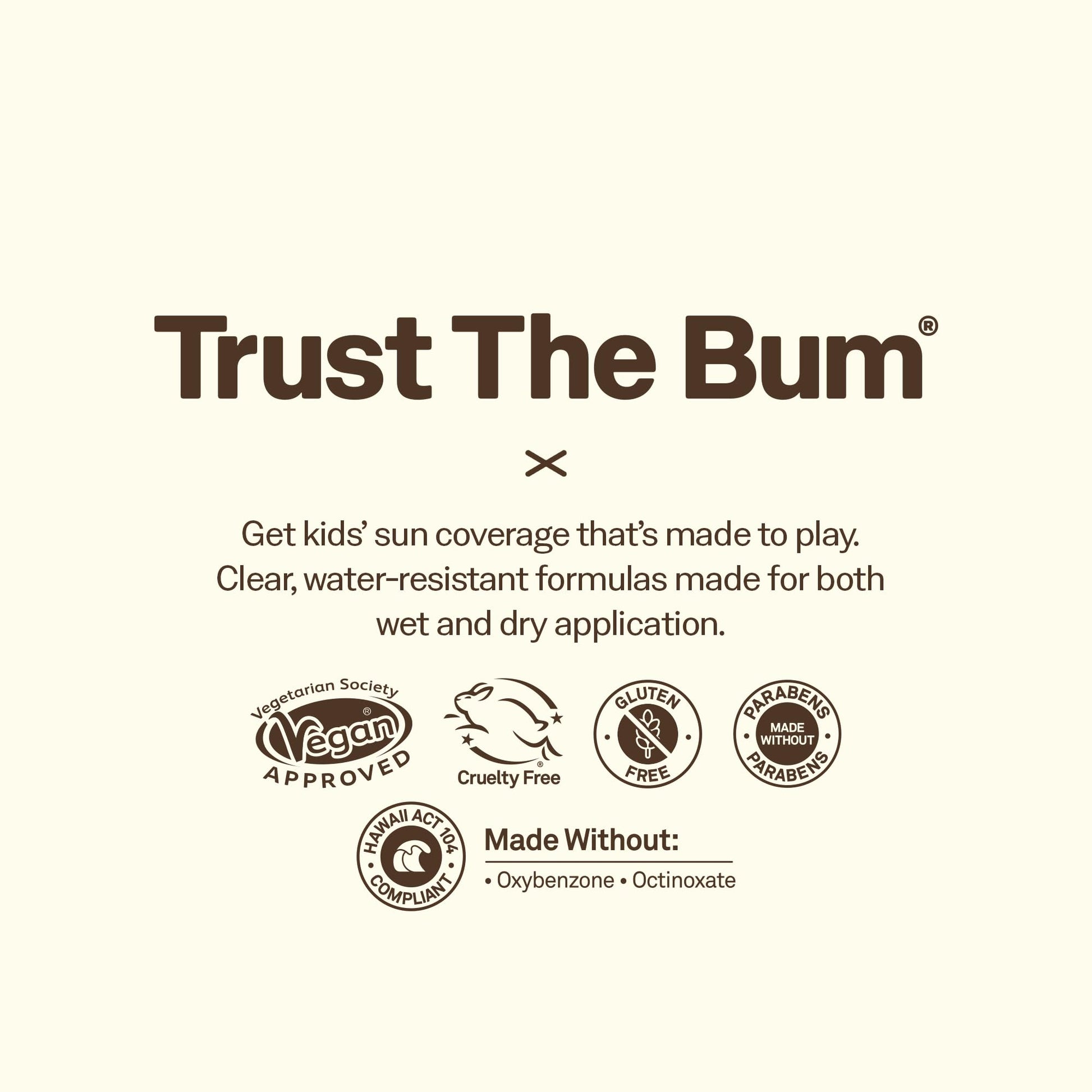 - TRUST THE BUM. For All Skin Types, Broad Spectrum Protection, Dermatologist Tested, Paraben Free, Vegan, Cruelty Free, Hawaii 104 Act Compliant