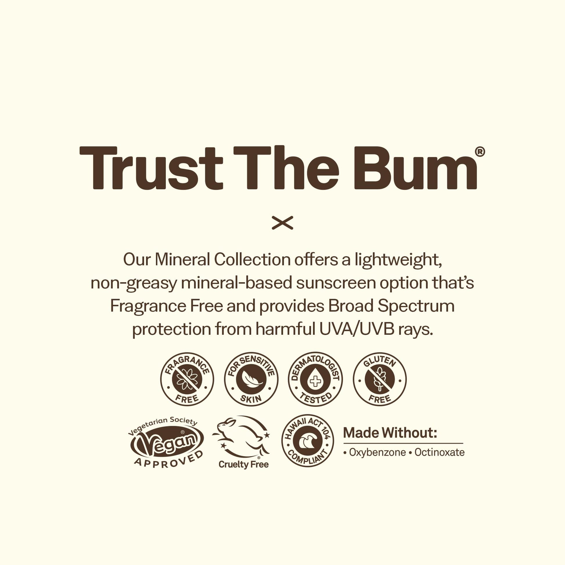 - TRUST THE BUM. What does that mean? It means trust us, the ones who live on the beach and need products that work on the most intense days in the sun. The simple truth is, when you make products to protect the ones you love, you make ‘em better.