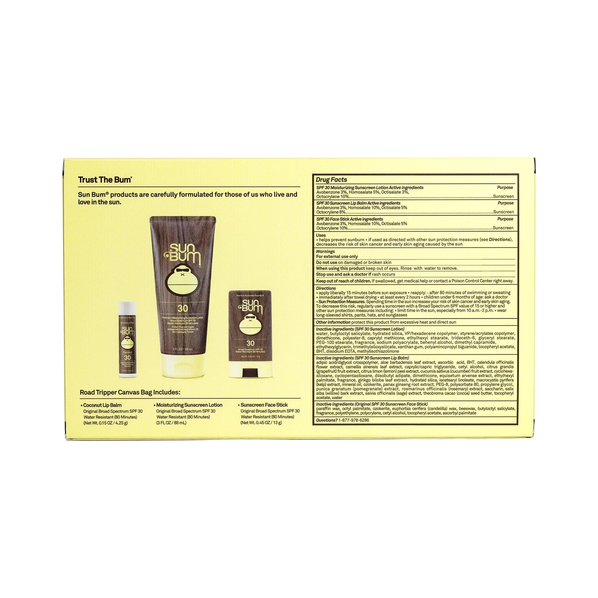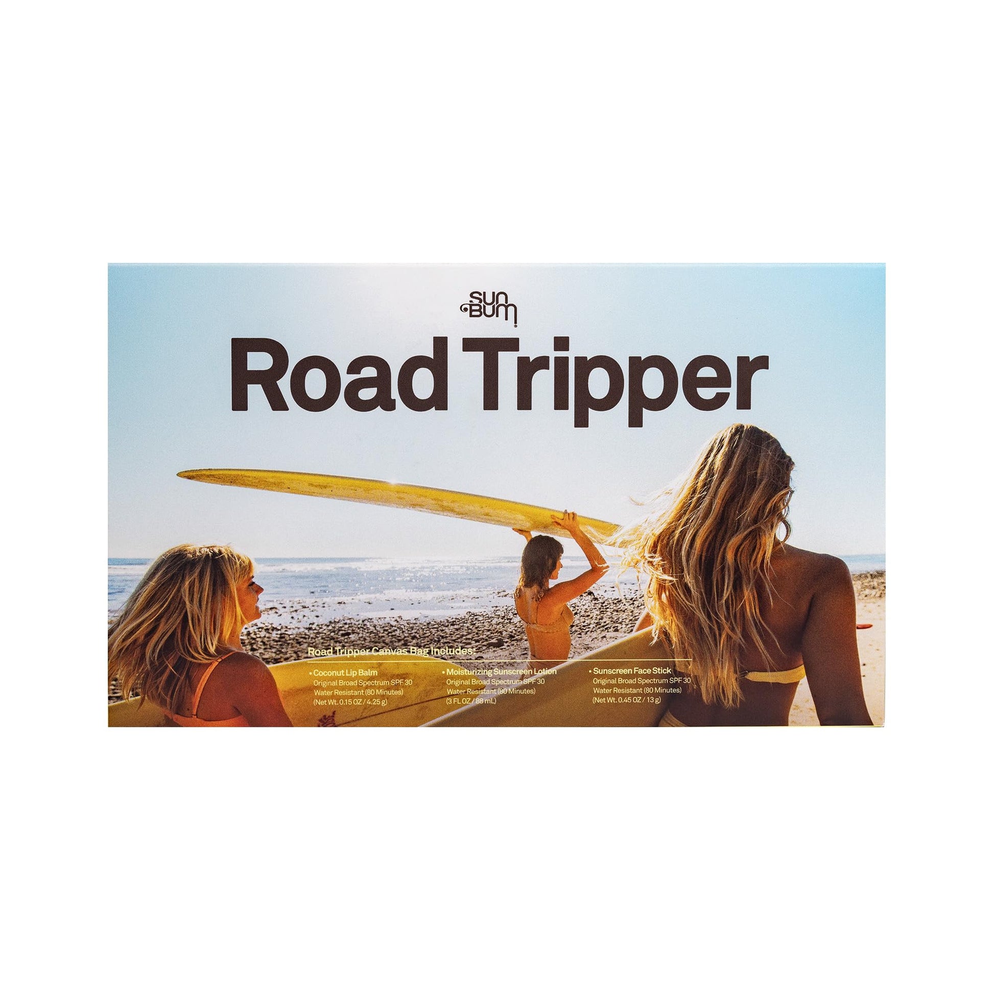 - THE ROAD TRIPPER. Head-to-toe coverage on the go. Includes: Travel-Sized Original SPF 30 Lotion, Full Sized Face Stick SPF 30, Full Sized Original Lip Balm 30 in Coconut.