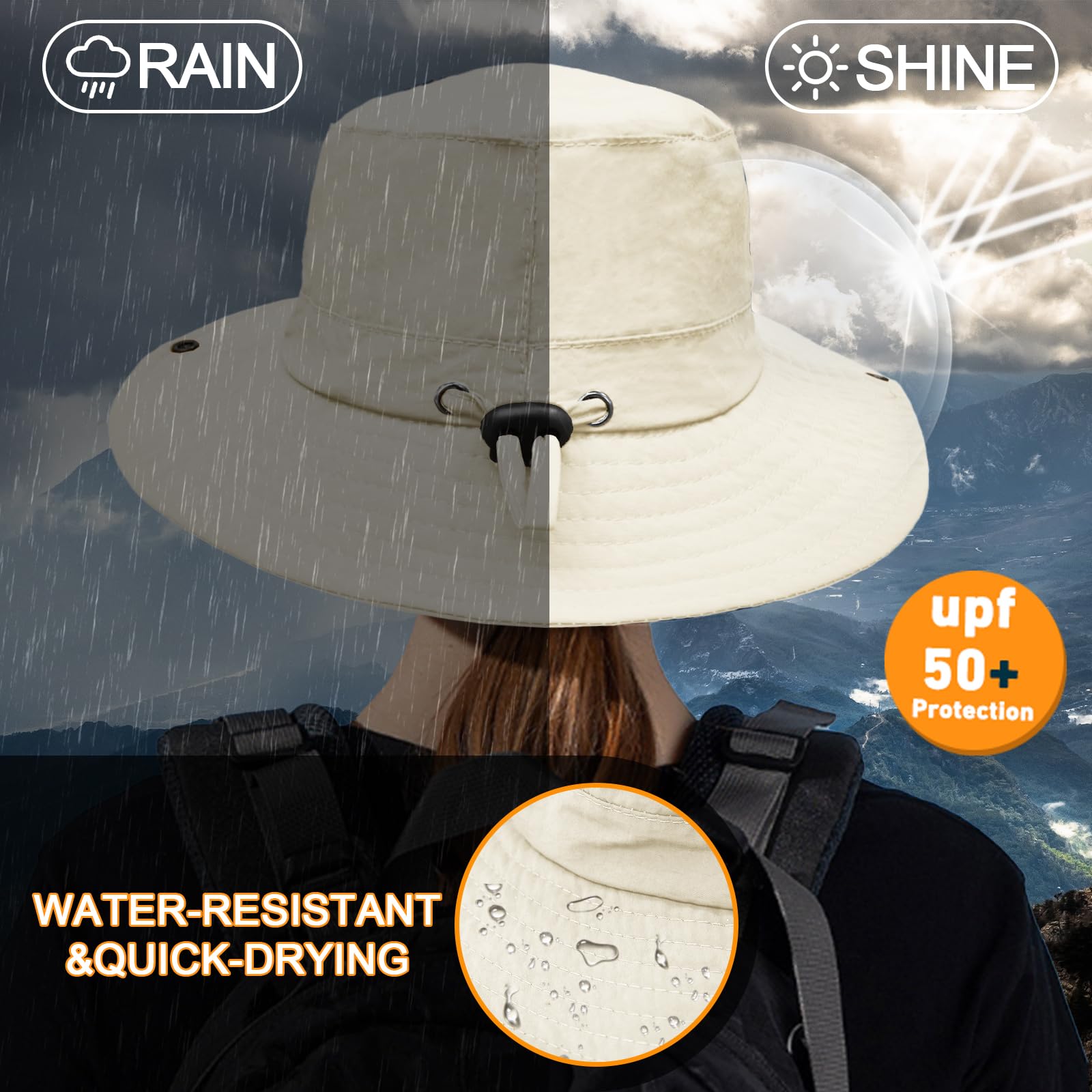 Sun Hats for Men Women Fishing Hat UPF 50+ Quick Dry Foldable Bucket Hat Adjustable Safari Hat for Beach Hiking Beige