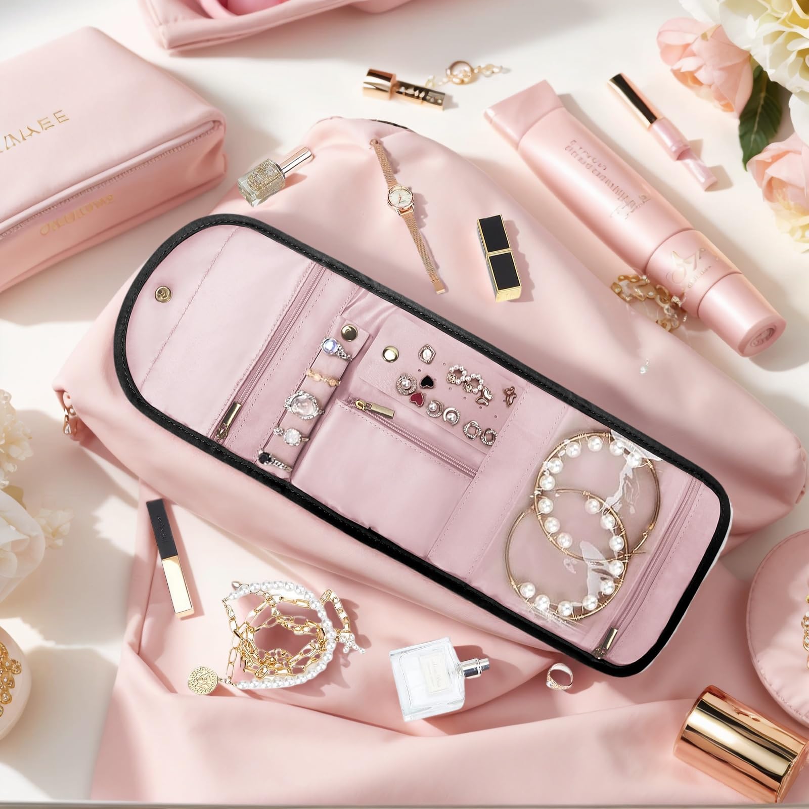 - Storage:Removable rolled jewelry organizer and zipper pouch, compartmentalized transparent window design, categorize necklaces, earrings, bracelets, anti-tangling.