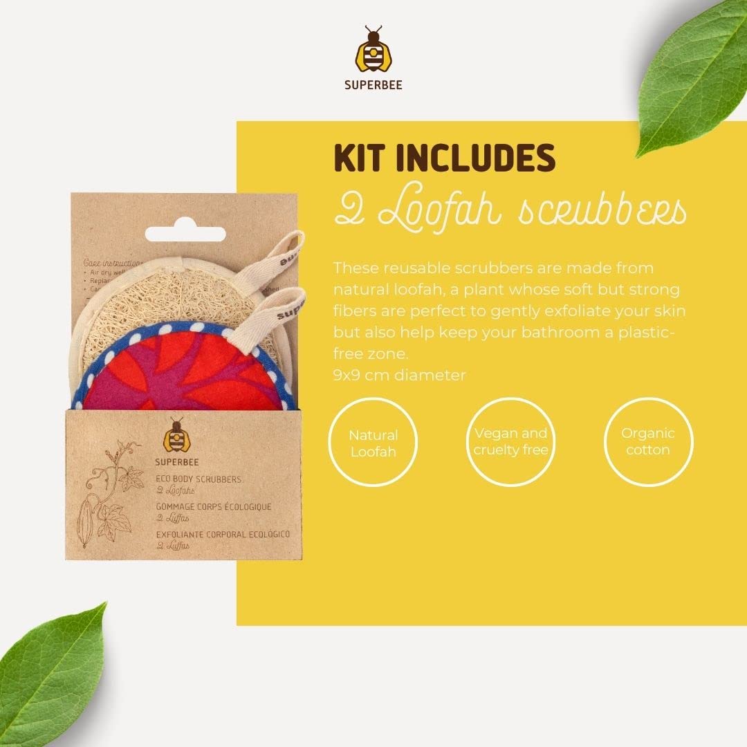 - NATURAL LOOFAH BODY SCRUBBERS AND COTTON PADS - 2 reusable scrubbers made from biodegradable and natural loofah, perfect to gently exfoliate your skin without chemicals and 3 reusable makeup removing pads. Replace your disposable cotton rounds. You’ll never have to use throwaway wipes, sponges or paper towels again. Use our super-gentle wipes on their own with makeup remover, or with your favorite facial products. Then simply wash & reuse.