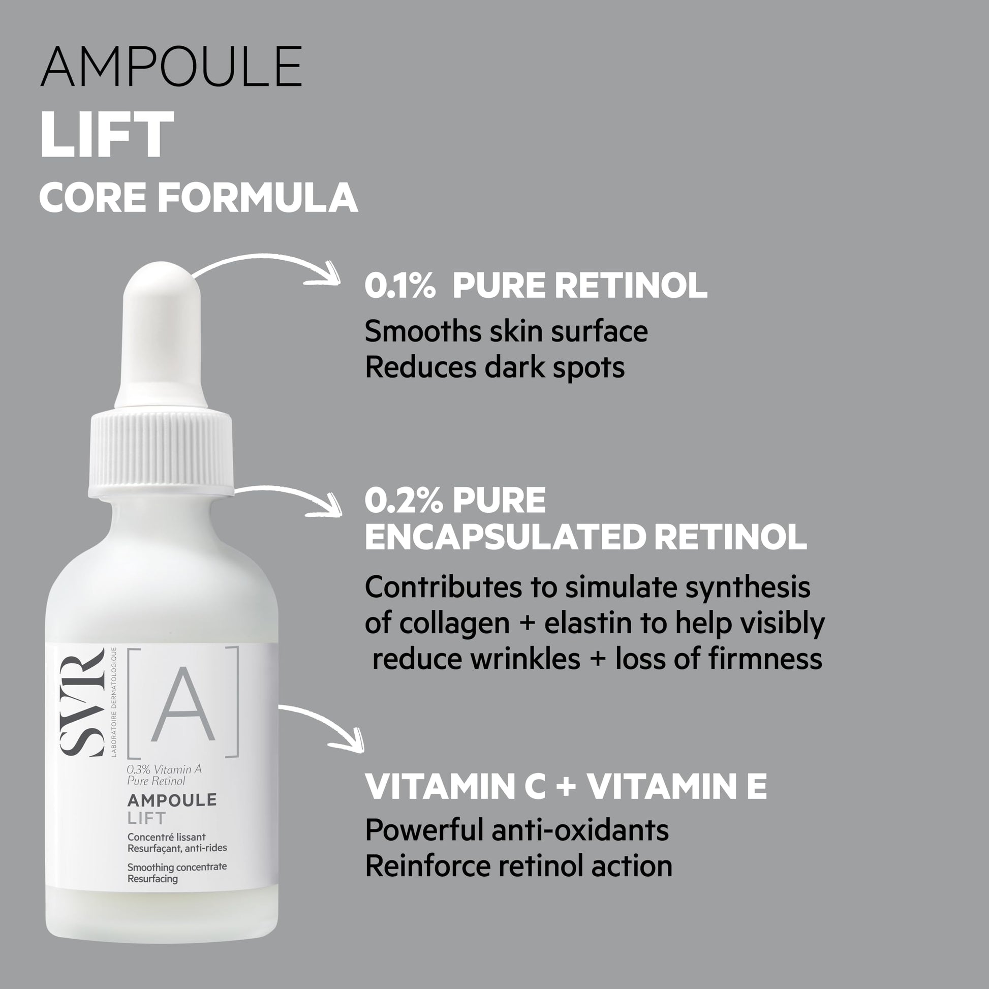 - The combination gently smoothes the skin surface and regenerates the epidermis. Pure Retinol concentrated at 0.1% Pure Retinol encapsulated at 0.2% by liposomes in the phospholipidic membrane.