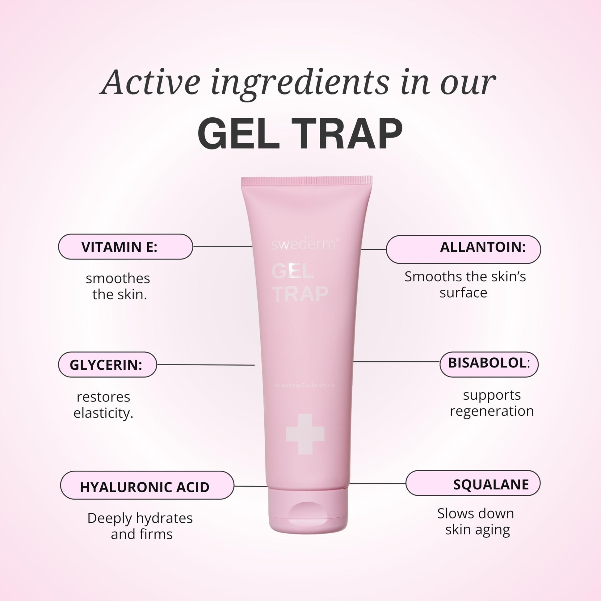 Details: Discover the perfect solution for dry, dehydrated, and mature skin with Swederm Gel Trap Body Lotion — an advanced body cream developed in Sweden with dermatological precision to deliver multi-level hydration and long-lasting skin softness. This lightweight yet powerful body lotion is infused with high-performance ingredients including hyaluronic acid, vitamin E, squalane, bisabolol, and allantoin, which together replenish moisture, strengthen the skin barrier, and soothe irritation. Whether you're struggling with daily dryness, seasonal skin changes, or post-sun exposure, Gel Trap provides immediate and visible relief. The gel-lotion texture glides effortlessly over the skin, absorbs quickly, and leaves a silky-smooth finish with no greasy residue — making it ideal for daily use, post-shower routines, or as an after sun lotion during beach vacations. Unlike many heavy creams, Swederm Gel Trap is designed for women who want effective hydration without heaviness, making it one of the best body lotions for mature dry skin. It nourishes deeply, supports skin elasticity, and restores softness — all while being gentle enough for sensitive skin. Perfect as part of your everyday beauty & skin care routine, this body lotion also fits easily into your travel or beach bag. Say goodbye to tight, flaky skin and hello to a visibly healthier, smoother, and more radiant complexion. Experience Swedish skin science with a touch of luxury — because your skin deserves it.