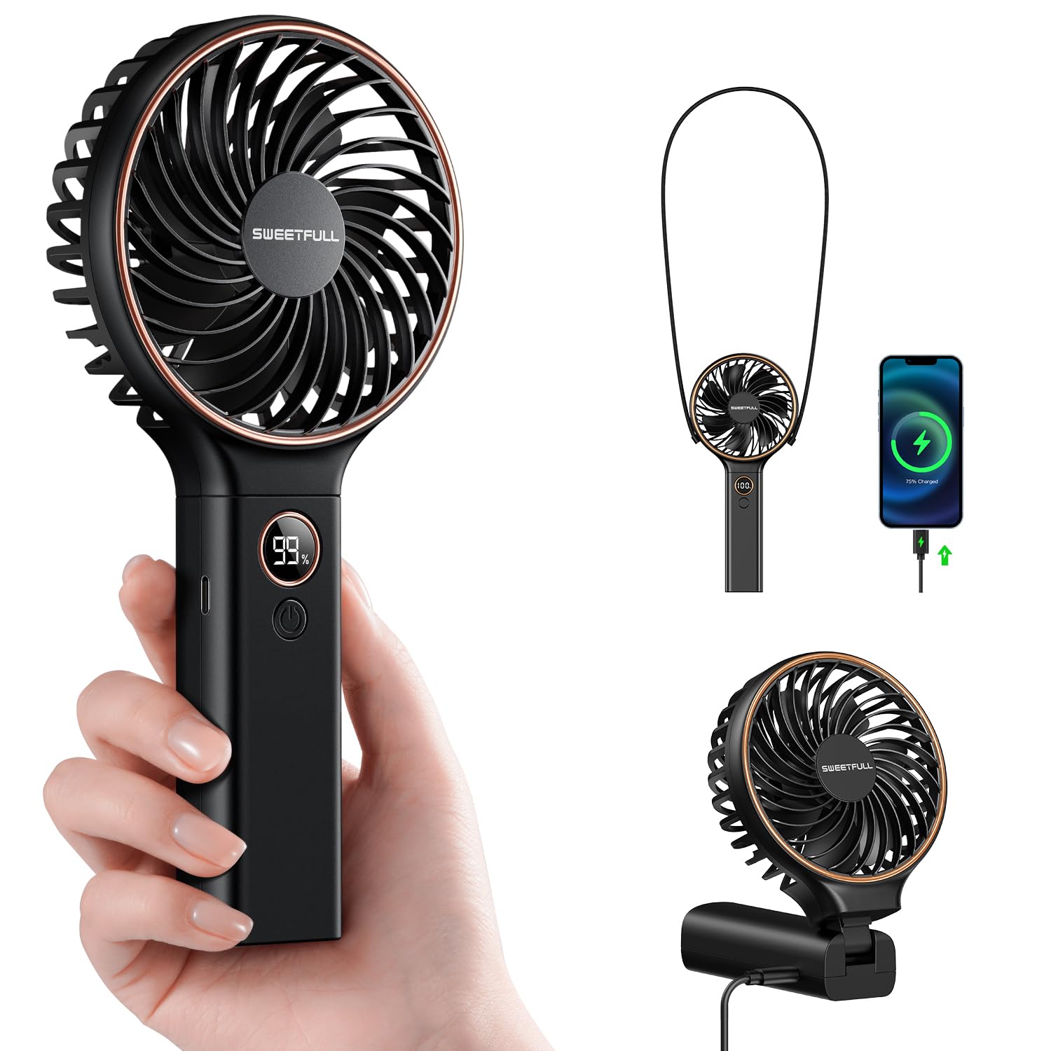 SWEETFULL Handheld Portable Fan, 5000mAh Rechargeable Battery, 6 Speed Wind, LED Digital Display, Foldable Electric Personal Mini Travel Fan with Backup Power, Summer Essentials Gifts for Women Girl