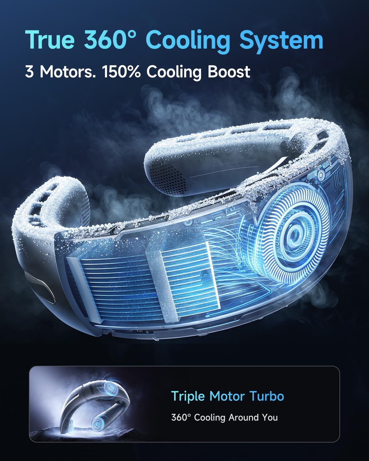 - 3 Motor 360° Surrounding Airflow: Equipped with 3 high-performance motors, this personal neck fan delivers powerful 360°airflow to cool your entire area. Ideal for traveling, hiking, shopping or camping.