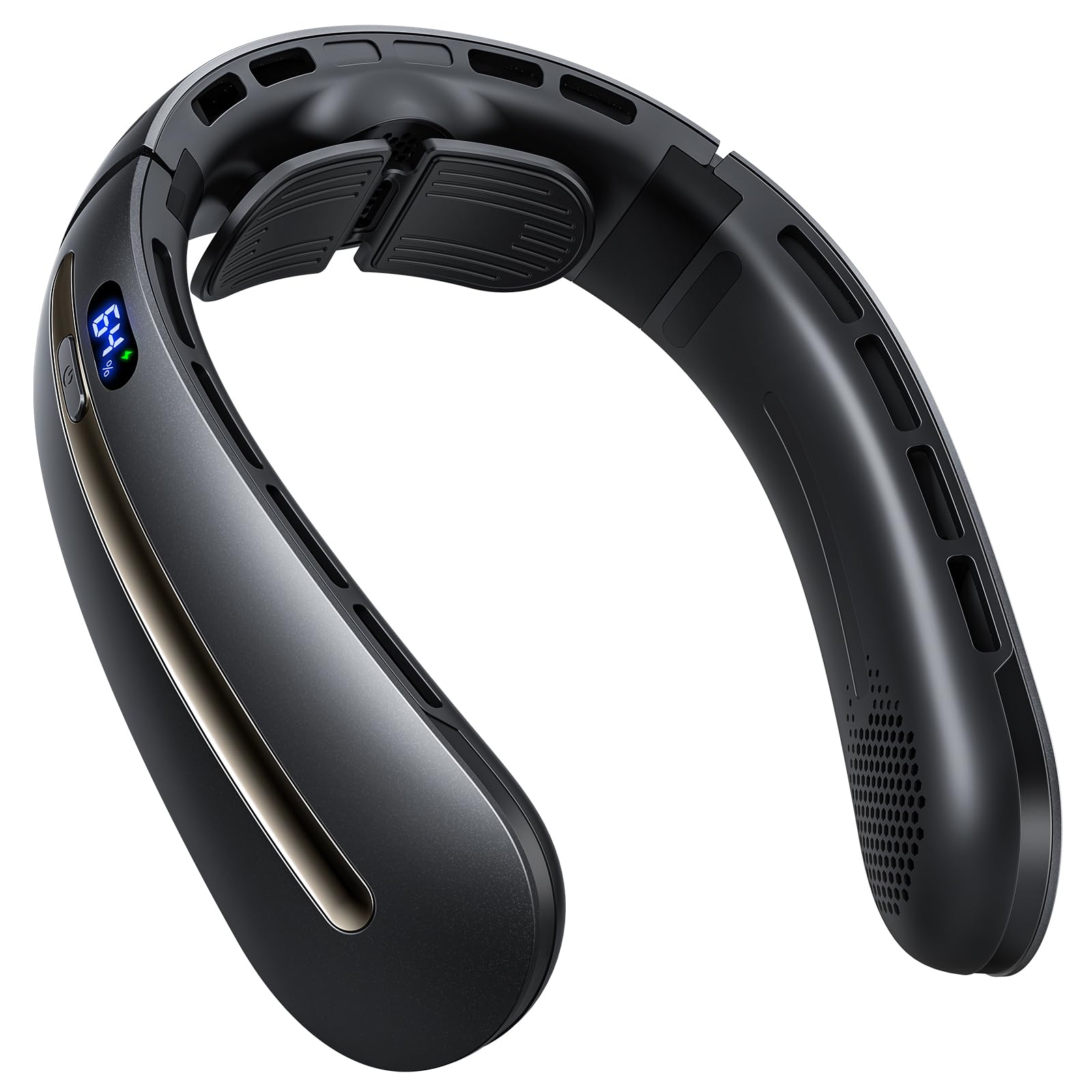 - LED Display & Long-Lasting Battery: Monitor the battery level and 4-speed settings via the LED display. Powered by a 5200mAh rechargeable battery, this portable neck fan provides up to 9 hours of use on a single charge.—perfect for all-day use.