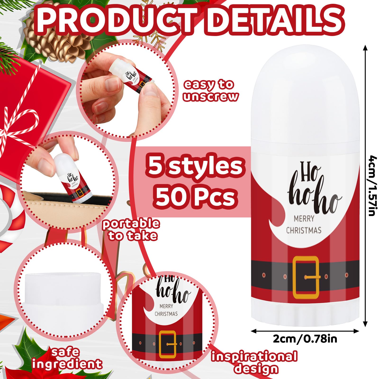 Swiffen 50 Pcs Christmas Mini Lip Balm Pack Thank You Gifts Moisturizer Assorted Flavors Beeswax Natural Ingredients Dry Chapped Lip Care Products for Coworkers Women Friend Men(Santa Claus)