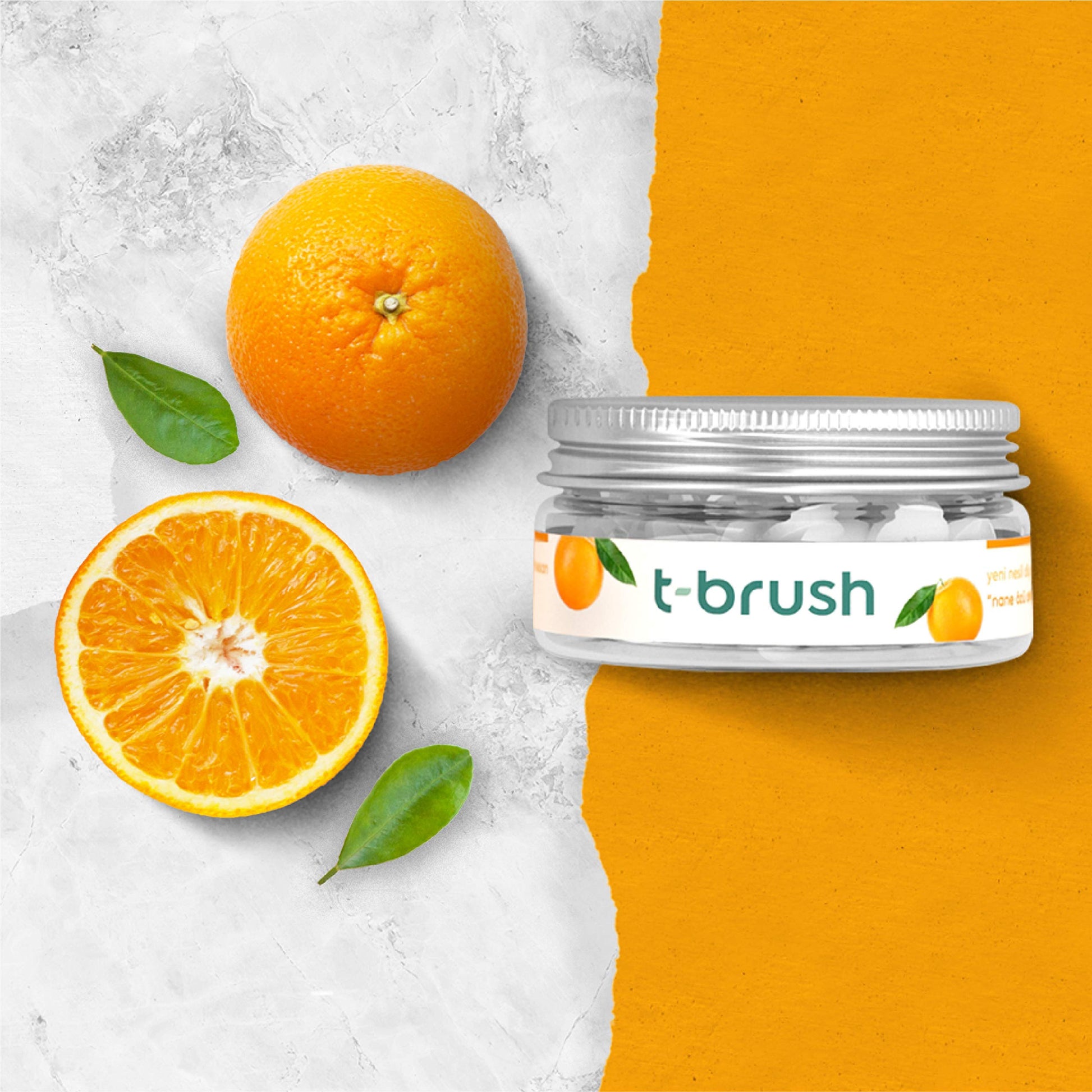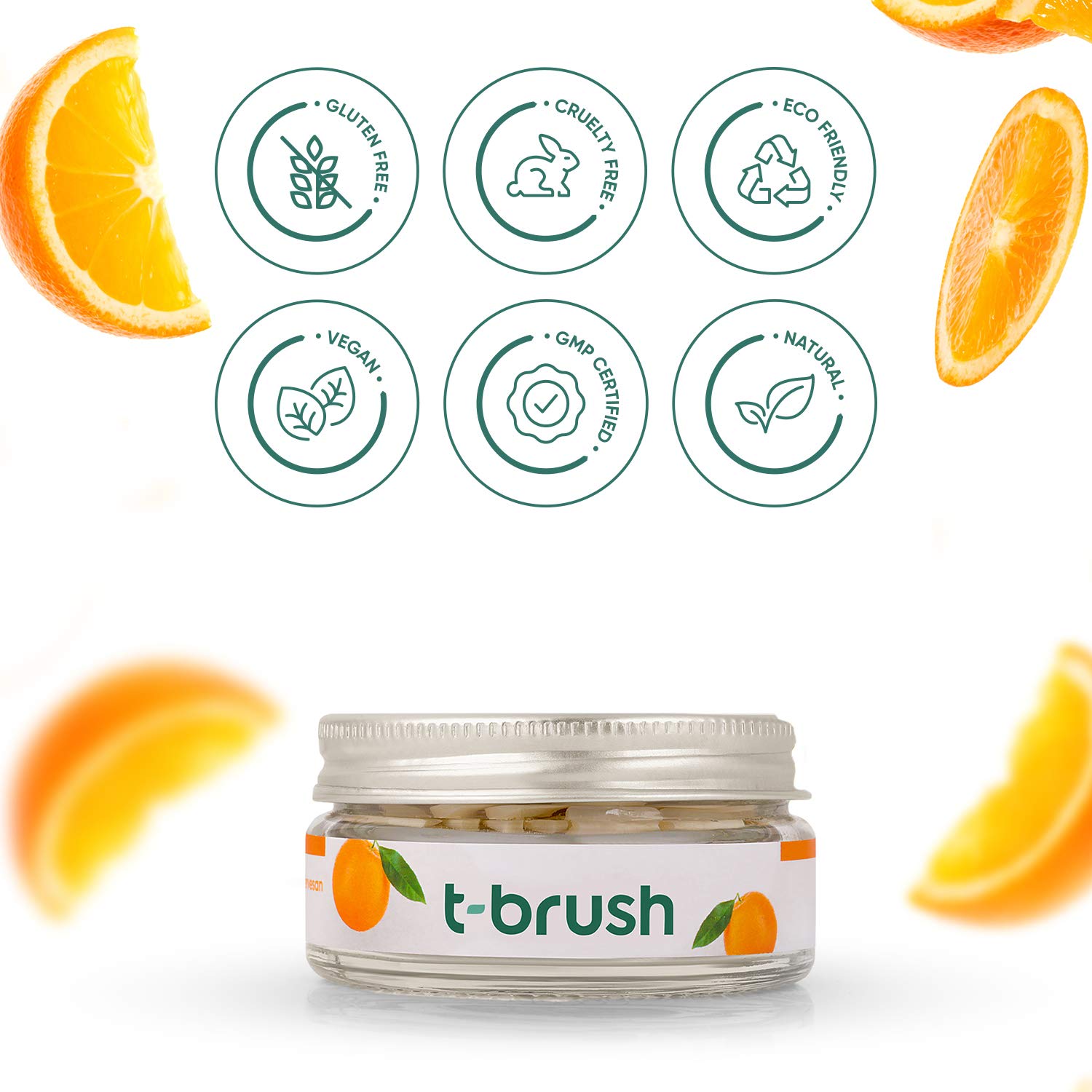 T-brush Whitening Travel Toothpaste Tablets Natural Ingredients, SLS Free, Gluten Free, Cruelty Free, Eco Friendly Packaging, Vegan - Orange Flavoured- Fluoride Free- 90 Tablets