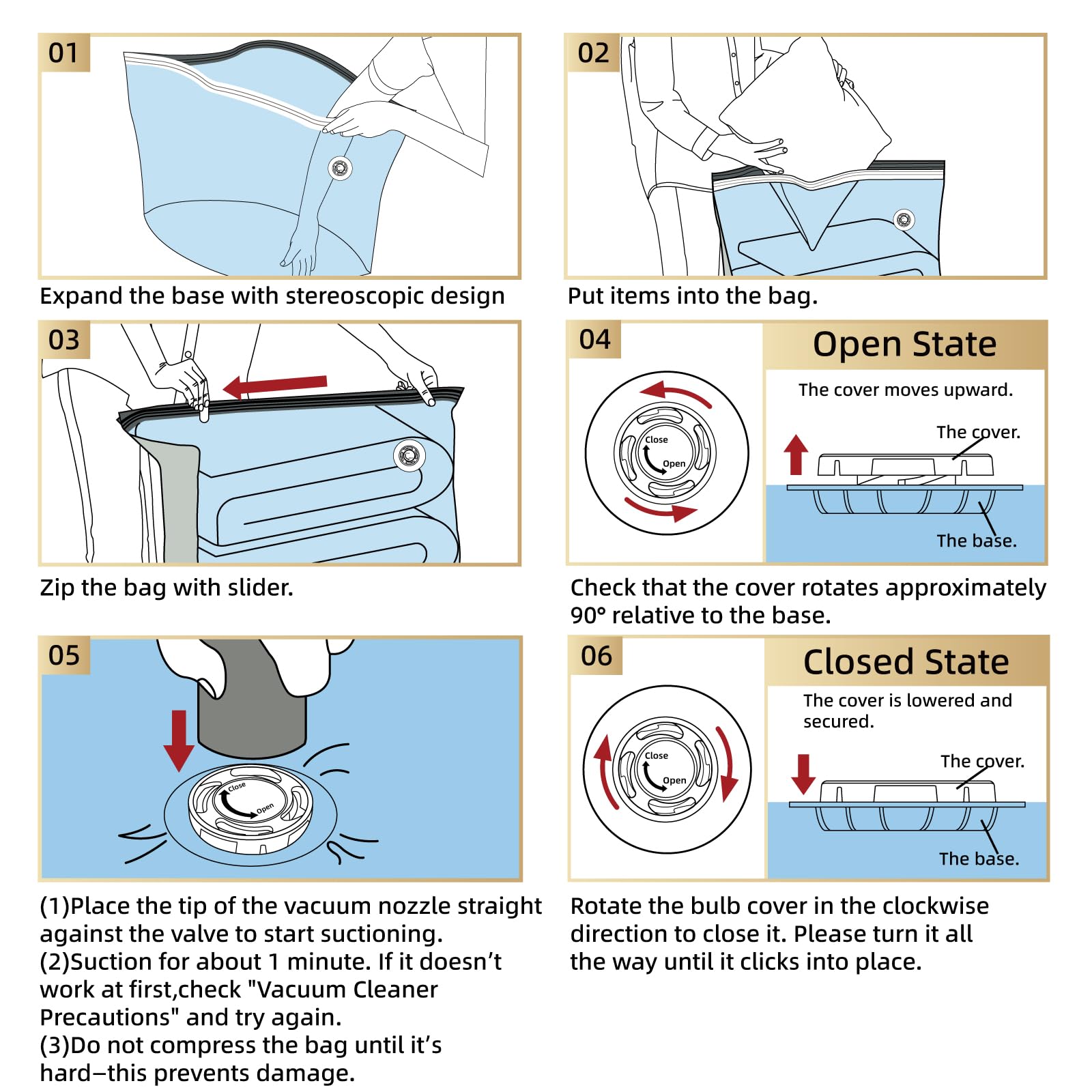 - Upgraded Cap-free Air Valve: Now you can compress these space saving bags by any regular vacuum cleaner. You don't need to take a hand pump for travel or camping. It is 3 times faster than traditional valve which saves time and space while at home or traveling