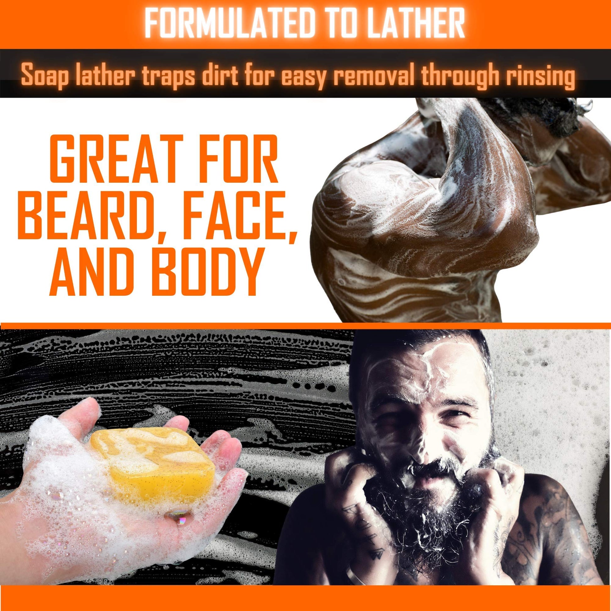 - Exfoliates And Promotes Growth: The strong lather and walnut granules in our men's soap clear the pores of dirt, oil, and dead skin, increasing blood circulation and beard growth while conditioning your beard. You can use it on both your face and body to feel clean and refreshed.