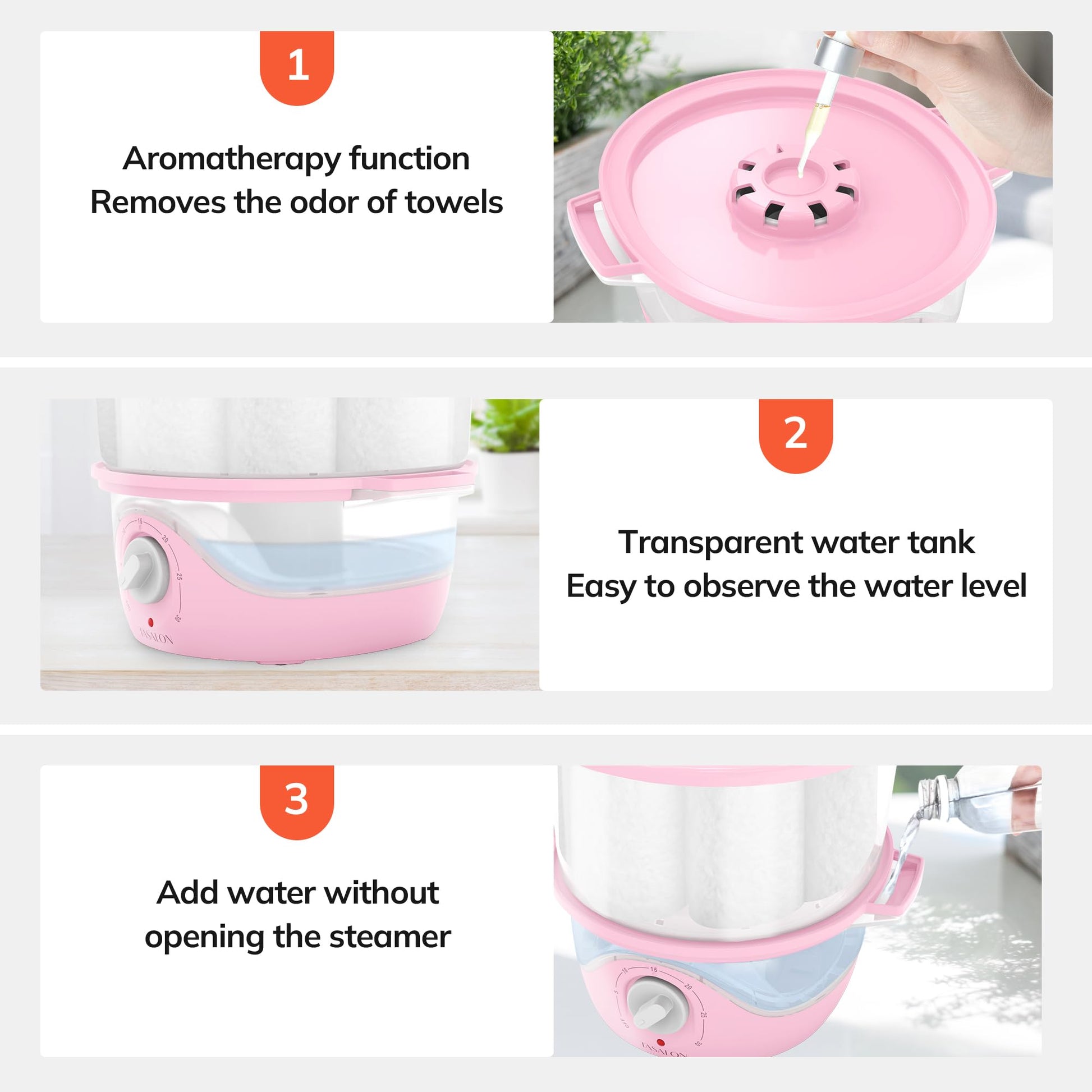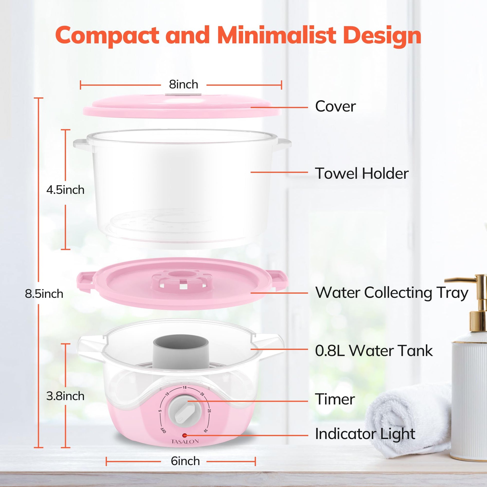 TASALON Pink Hot Towel Steamer for Facials, 5-Min Quick Heating Towel Warmer Machine, Portable Spa Salon Equipment with Aromatherapy for Massage
