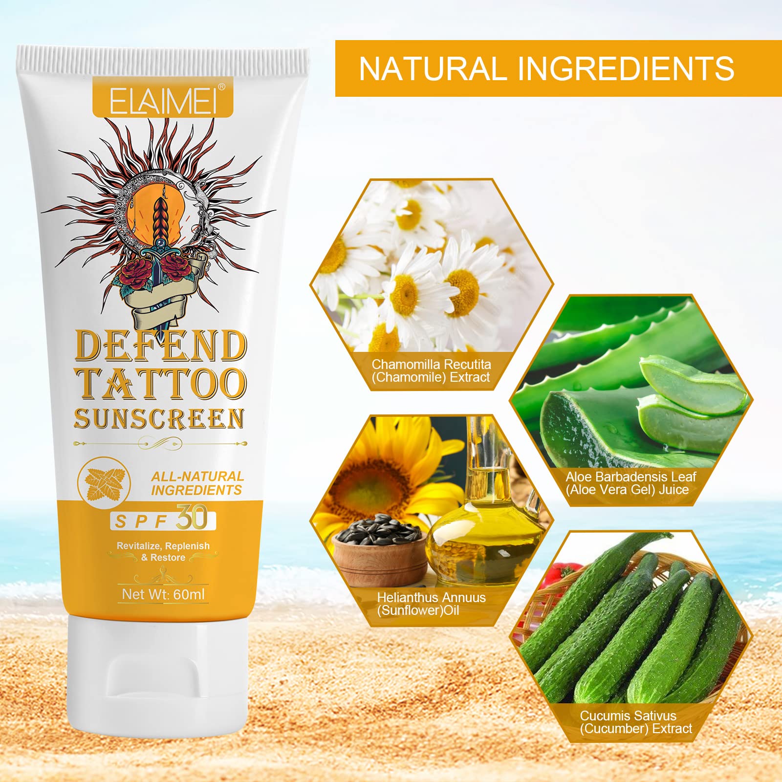 - DAILY PROTECTION - The tattoo aftercare sunscreen our SPF 30 Sunscreen doubles up on the protection by partnering skin-soothing like Vitamin C, Aloe Vera Gel and Argan Oil to keep skin well-supported and shielded from the elements.