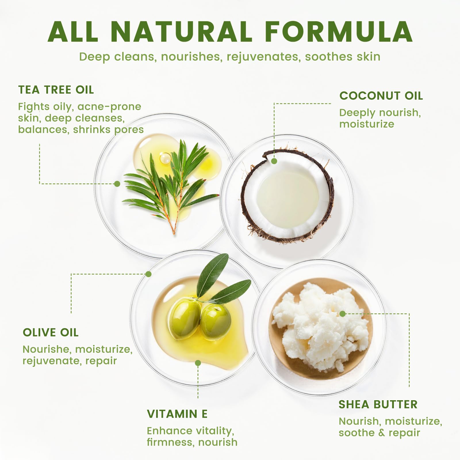 - Natural Aroma: Experience the crisp, clean, and fresh fragrance of pure tea tree essential oil. This tea tree bar soap body wash naturally derived scent provides an invigorating and uplifting aromatherapy experience during your shower or bath, helping to awaken your senses and boost your mood for the day ahead
