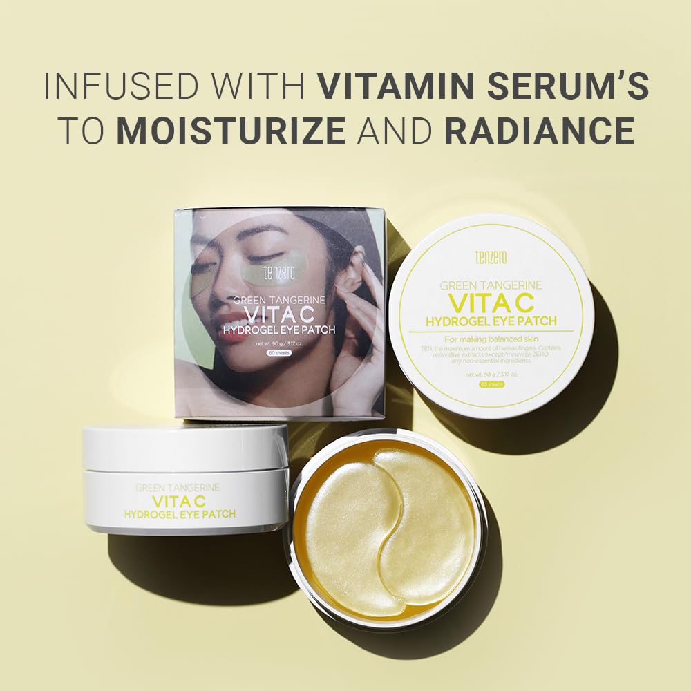 tenzero Green Tangerine Vita C Hydrogel Eye Patch 60 Patches (90g), Vitamin C Treatments for Dark Circles, Puffy Eye, Fine Lines, Brightening, Hydrating Eye Pads, Korean Under Eye Masks Skincare