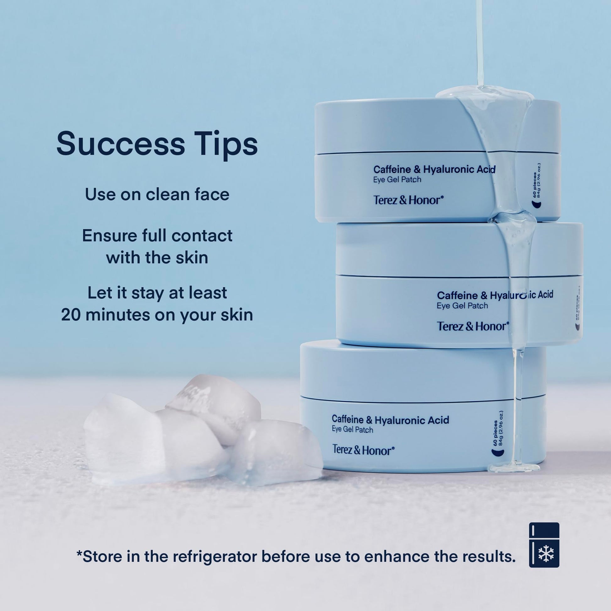 TEREZ & HONOR Under Eye Patches for Dark Circles - 60 Korean Hydrogel Masks for Puffiness, Bags with Caffeine, Hyaluronic Acid, Niacinamide - Undereye Brightening, Hydrating, Anti-Wrinkle & Cooling