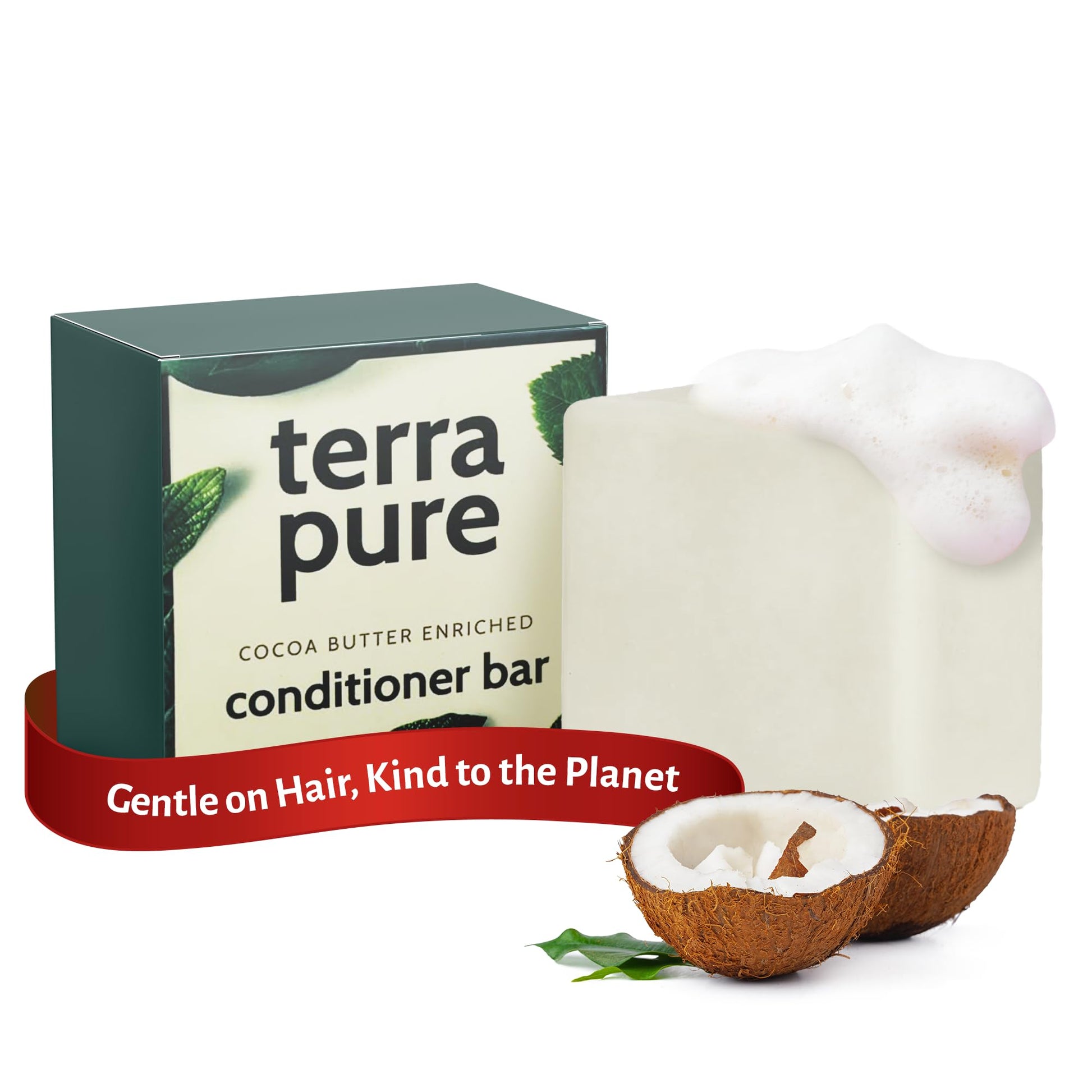Terra Pure Conditioner Bar | Cocoa Butter Enriched by 1-Shoppe | Plastic Free, Soap Free, Vegan, Plant Based, Sustainable, Eco-Friendly, & Zero Waste