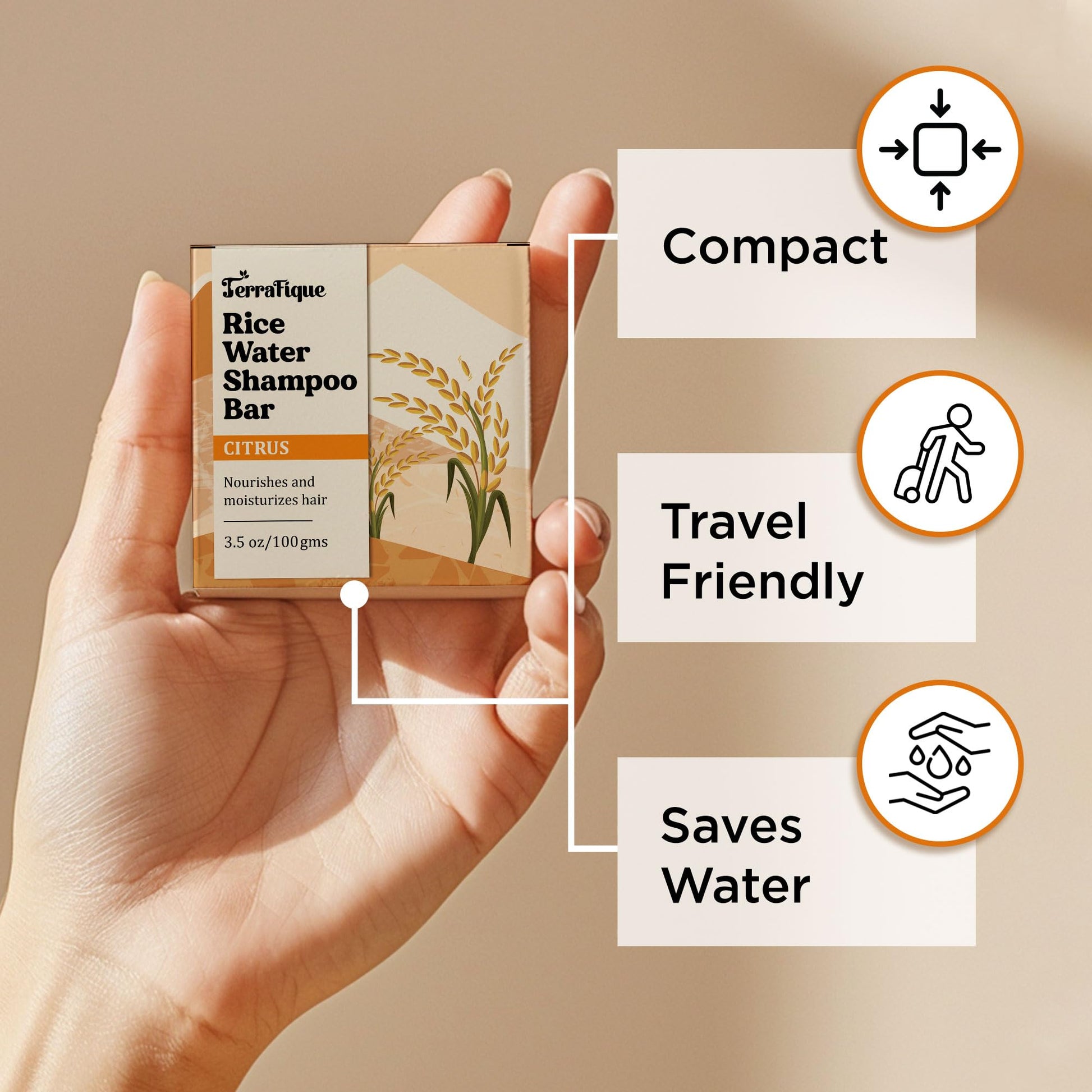 - TRAVEL FRIENDLY: No more worrying about sticky spills in your bag. Our rice water shampoo conditioner bars fit in your carry-on, gym bag, or purse and are ready to go. This solid shampoo bar is even great for campers who want hassle-free haircare.