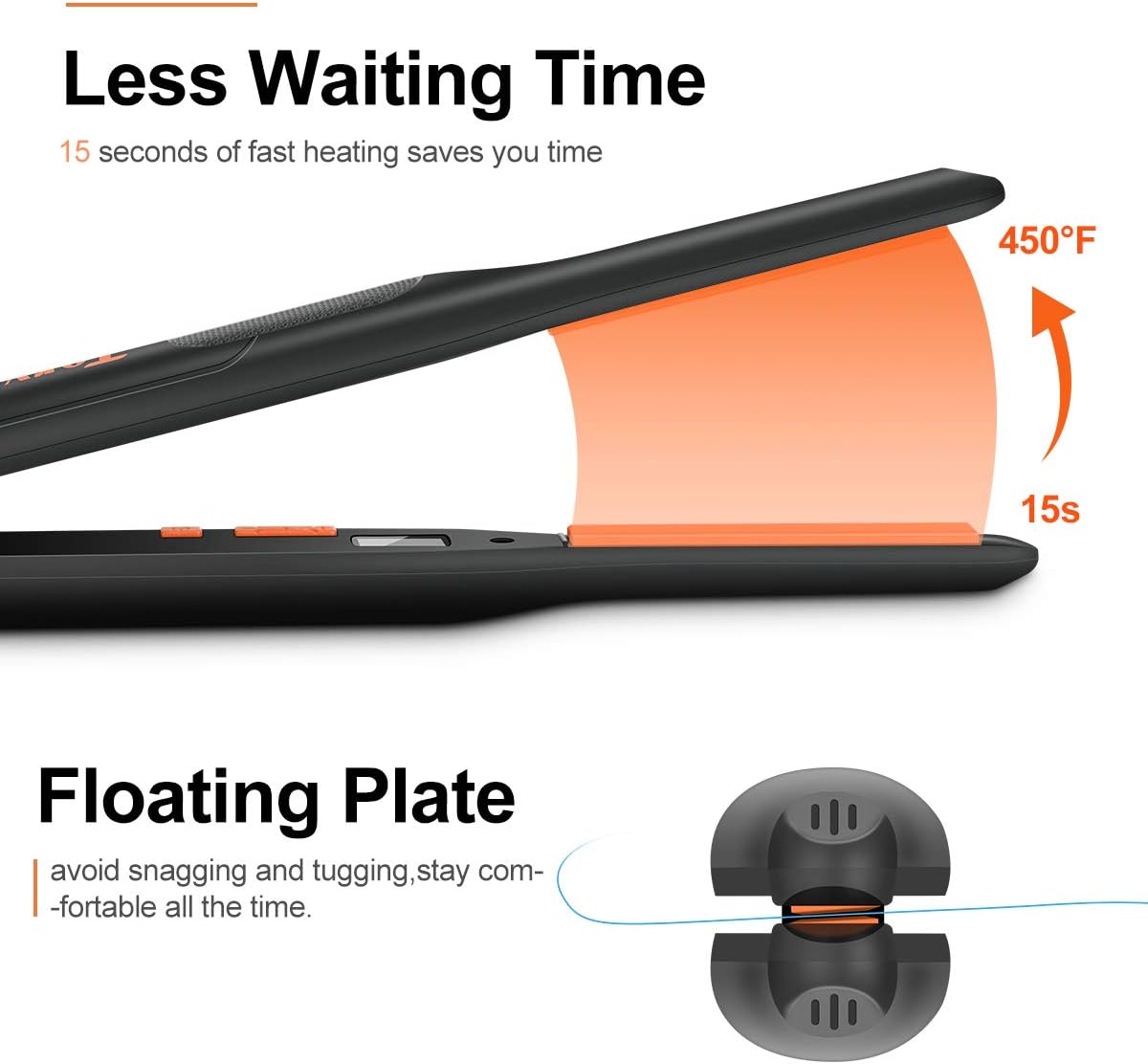- Adjustable Temperature:Terviiix mini flat iron with adjustable temperature ranged from 122¡ãF to 450¡ãF that you could choose the favorable temperature for all hair styles. Digital LCD display panel shows the real-time temperature you adjusted, avoiding too higher temp damage you hair