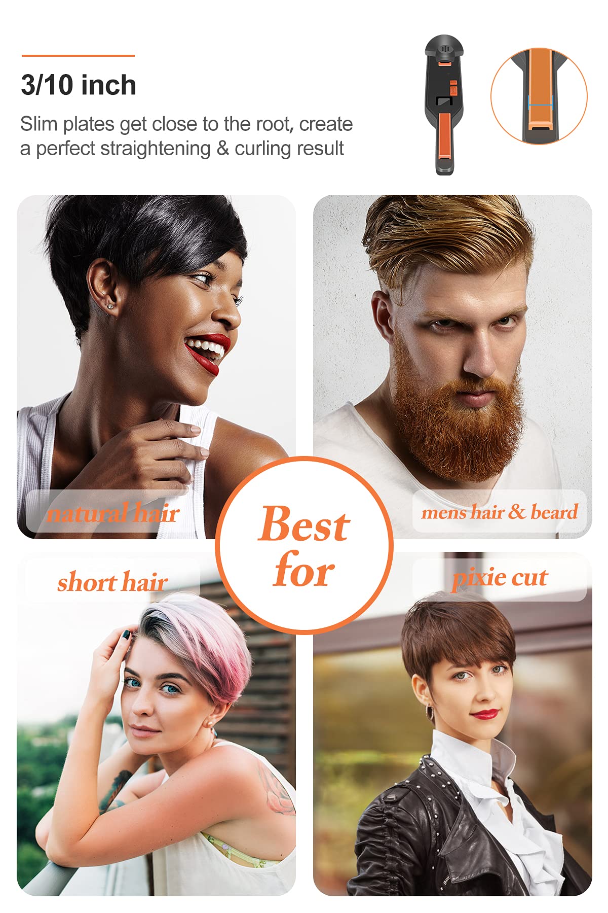 - 3/10 Floating Plate & 15 Fast Heat up:Terviiix small flat iron has professional MCH heating modeul which make 15 senconds reach up to 450¡ãF , saving your waiting time. The 3/10 floating plate provides various angles to make style and better get to the roots and edge .ideal for shorter hair, thick, curly, wavy hair or men's beard