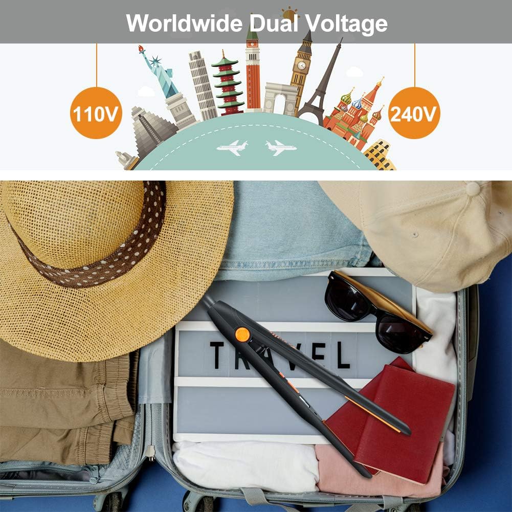 - Worldwide Dual Voltage & Pouch for Travel:Terviiix mini short hair curling iron with 100-240V dual voltage could automatically adjust to the proper voltage wherever you are styling . Package also include a premium velvet pouch to store the straightener. Pack it up and show your charming hair wherever you are