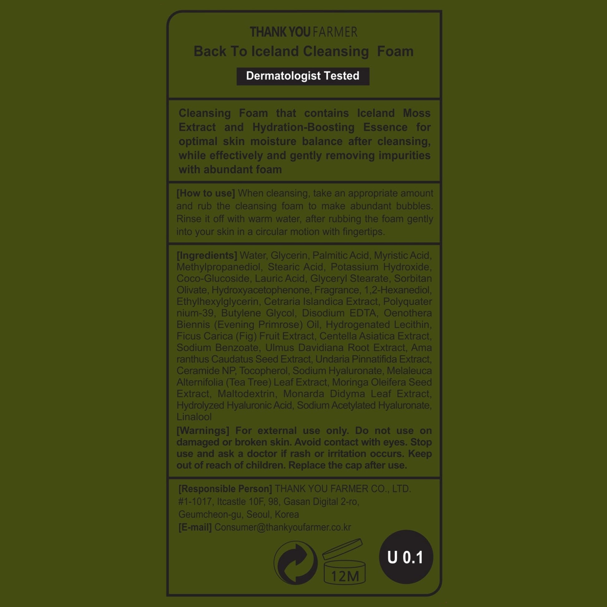 THANKYOU FARMER Back To Iceland Cleansing Foam 4.22 Fl Oz (120ml) - Pore Cleansing, Moisturized-Finish, Mens Face Wash, Face Cleanser, Face Wash For Women, Face Wash For Oily Skin