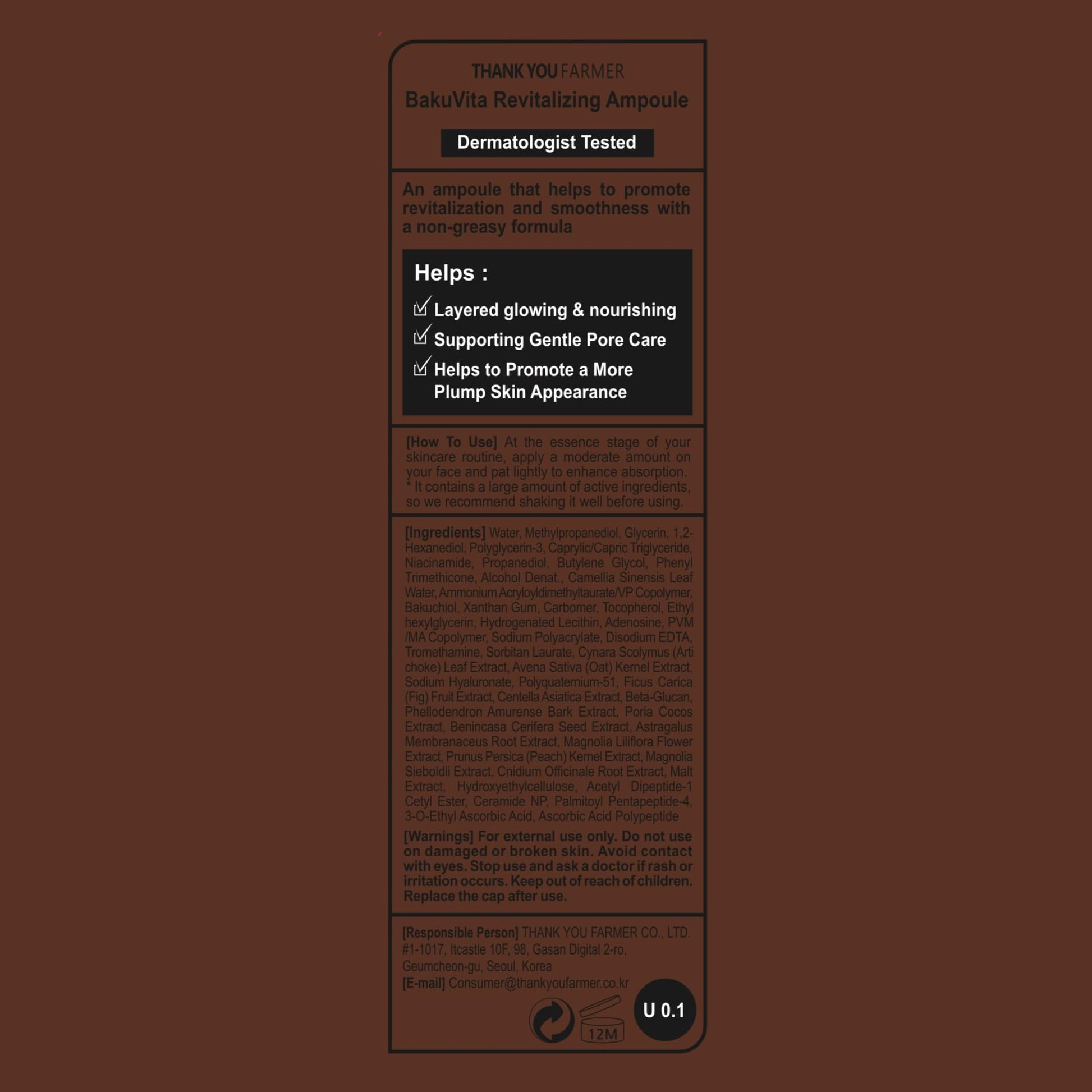 THANKYOU FARMER BakuVita Revitalizing Ampoule - Bakuchiol Retinol Alternative, Vitamin C + E Korean Serum, Pore Care, Firming, Vegan 1.75 fl oz (50ml)