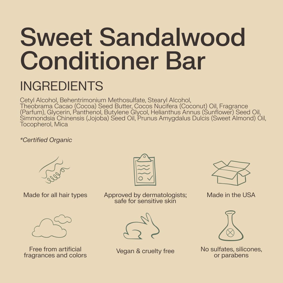 The Earthling Co. Conditioner Bars - Promote Hair Growth, Strengthen & Moisturize - Paraben Free formula with Natural Ingredients for Dry Hair (Sweet Sandalwood, 1.8 oz) (3 Pack)