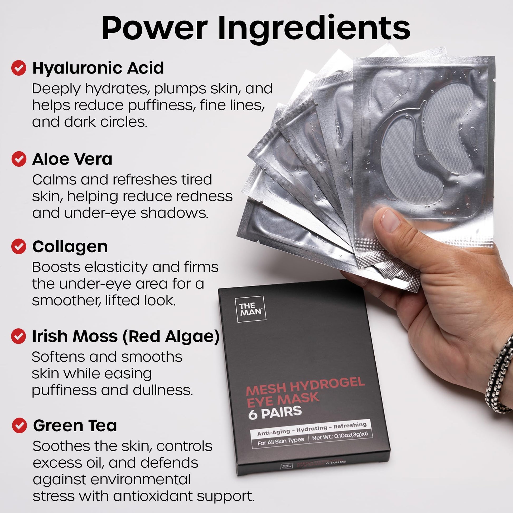 Details: Elevate your grooming game with The Man Silicone Face Scrubber & Mesh Hydrogel Eye Mask Bundle—a powerhouse duo designed for men who want results without complication. This self-care set combines deep cleansing with targeted under-eye hydration, giving you a sharp, refreshed, and confident look every day. The silicone face scrubber is engineered specifically for men’s skin. Traditional loofahs and harsh sponges trap dirt, wear out quickly, and can leave skin irritated. Our durable, 100% silicone scrubber is hygienic, quick-drying, and easy to clean—built to last while staying safe for daily use. The soft but firm bristles effectively remove dirt, oil, sweat, and buildup without scratching or over-exfoliating. Its ergonomic grip design makes it easy to control, whether you’re cleansing after a workout, prepping your face for shaving, or just keeping your skin fresh and clear. The mesh hydrogel under-eye masks deliver an instant refresh for tired eyes. Designed to hydrate, cool, and de-puff, these patches help reduce the appearance of dark circles and puffiness—common issues for men balancing long workdays, tough workouts, or late nights. The mesh structure makes them easy to apply and remove without slipping, while the hydrogel locks in moisture for maximum absorption. Use them before a big meeting, after the gym, or anytime you want to look awake, sharp, and energized. Together, this bundle creates a simple but powerful men’s skincare routine. The scrubber ensures a cleaner, smoother canvas by keeping pores clear and skin fresh, while the eye masks target one of the most noticeable signs of fatigue: your eyes. No complicated steps, no gimmicks—just straightforward grooming tools that deliver real results. Perfect for men’s skincare beginners or grooming enthusiasts, this set also makes a great gift for birthdays, Father’s Day, holidays, or simply upgrading your own routine. Invest in your face, refresh your eyes, and step out with confidence—because self-care isn’t just for women, it’s the new standard for men.