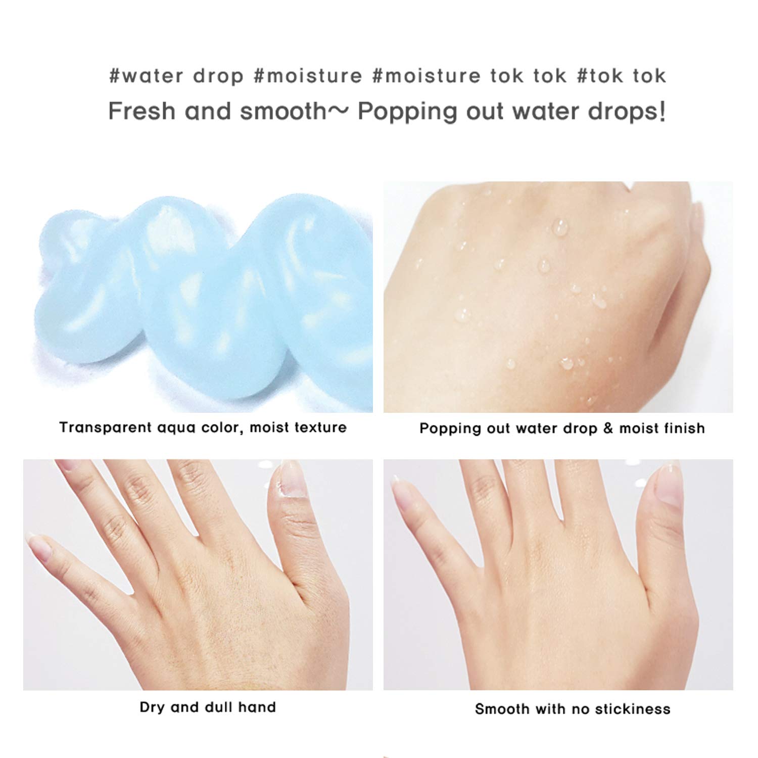 - WATERDROP TYPE'S FRESH MOISTURE ON SKIN WITH NON-STICKY, applying with 'Water in Silicon Oil,' hand cream's texture is light, soft, and transparent aqua color. You can feel its light and smooth texture, and it keeps your skin moisture long without a sticky feeling. Compared with other regular hand creams, our waterdrop type hand creams give smooth finish by soft spreadability.