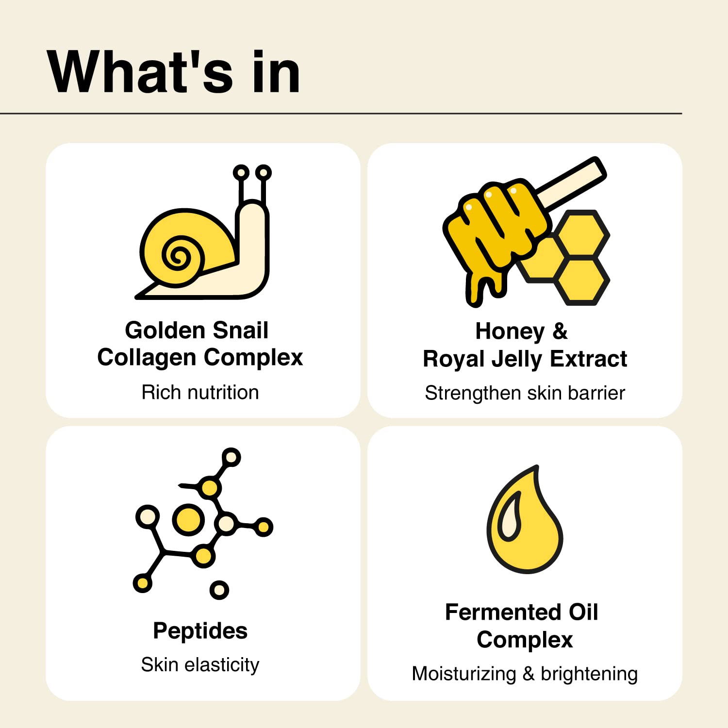 - SNAIL ESSENTIAL COMPLEX FOR MOISTURIZATION: This wrinkle bounce multi-moisture balm contains a Golden snail collagen complex. This snail complex in our ultra-repair firming collagen cream strengthens the skin's moisture barrier, making the skin firm, and provides a rich softening and moisturizing effect.